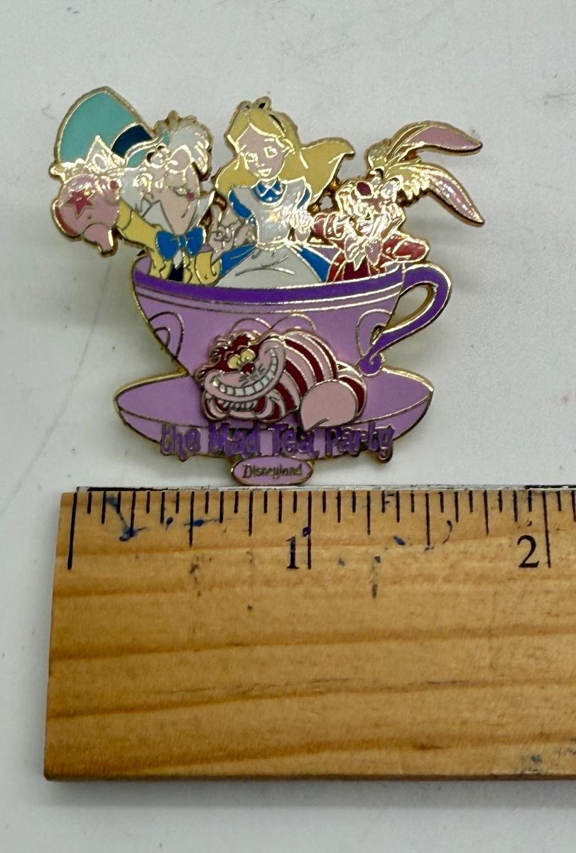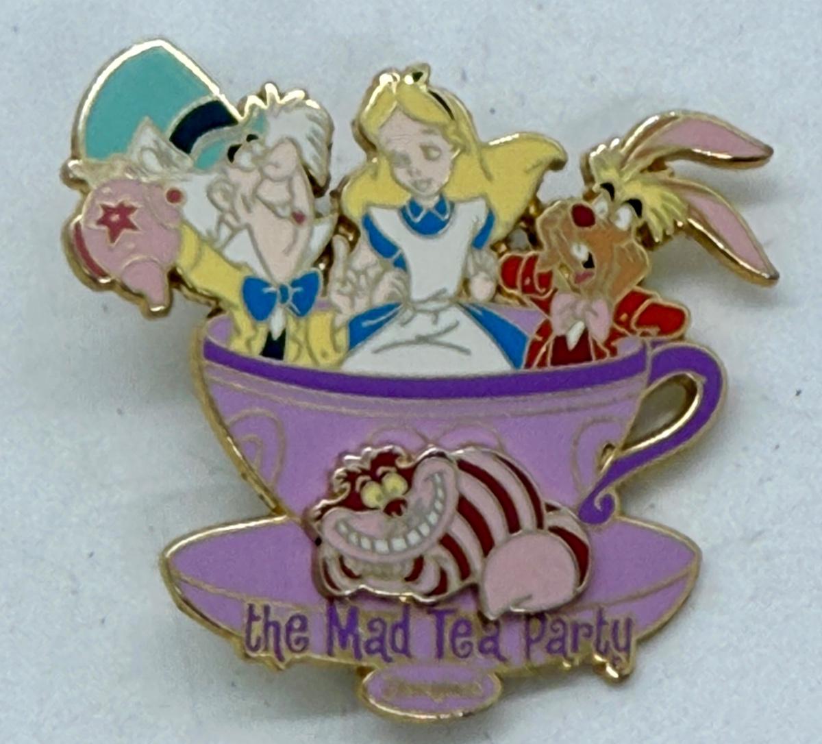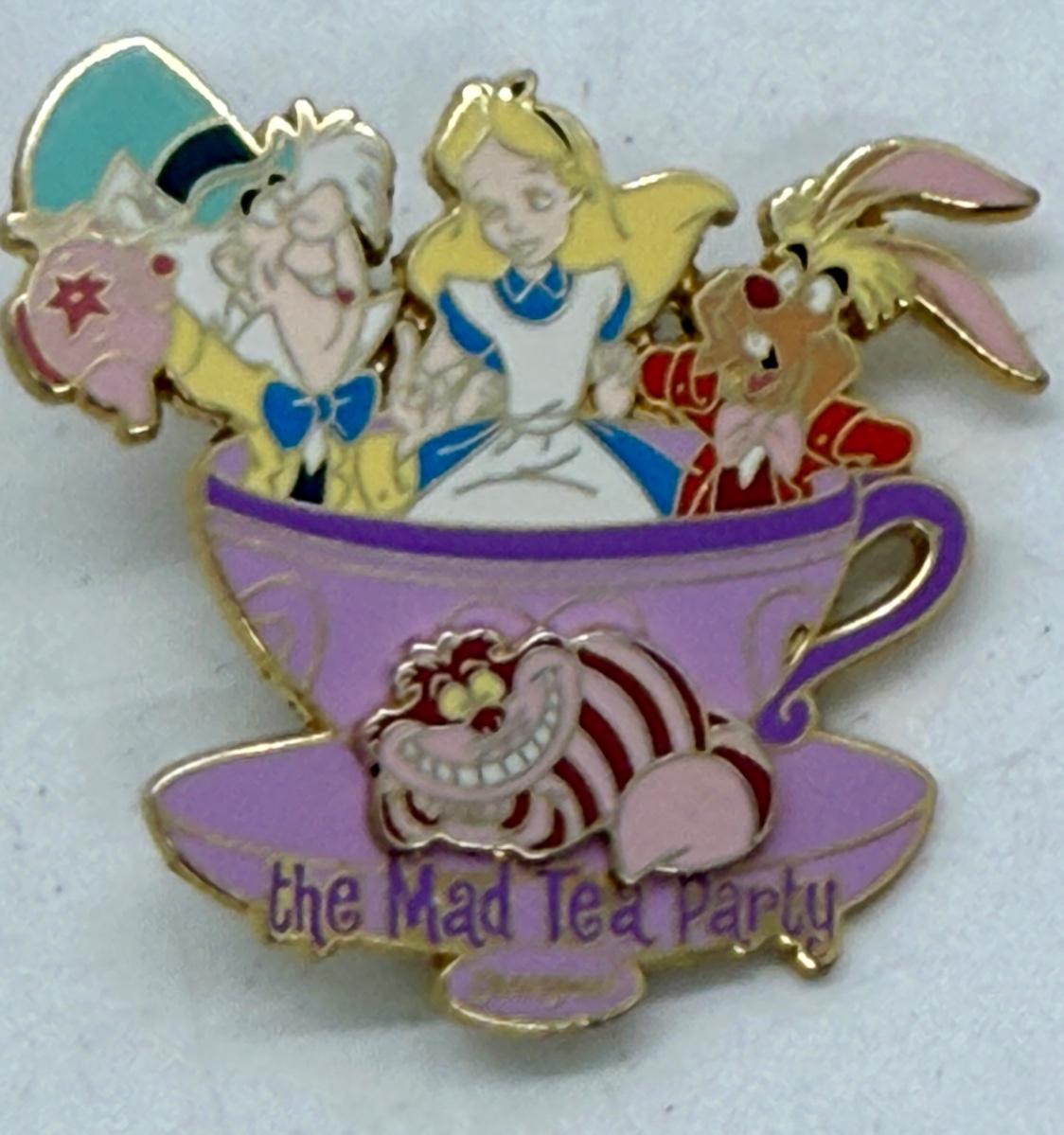 Alice in Wonderland Characters Riding Teacup Mad Tea Party Attraction Disney Trading Pin Mad Hatter, March hare, Cheshire Cat Alice