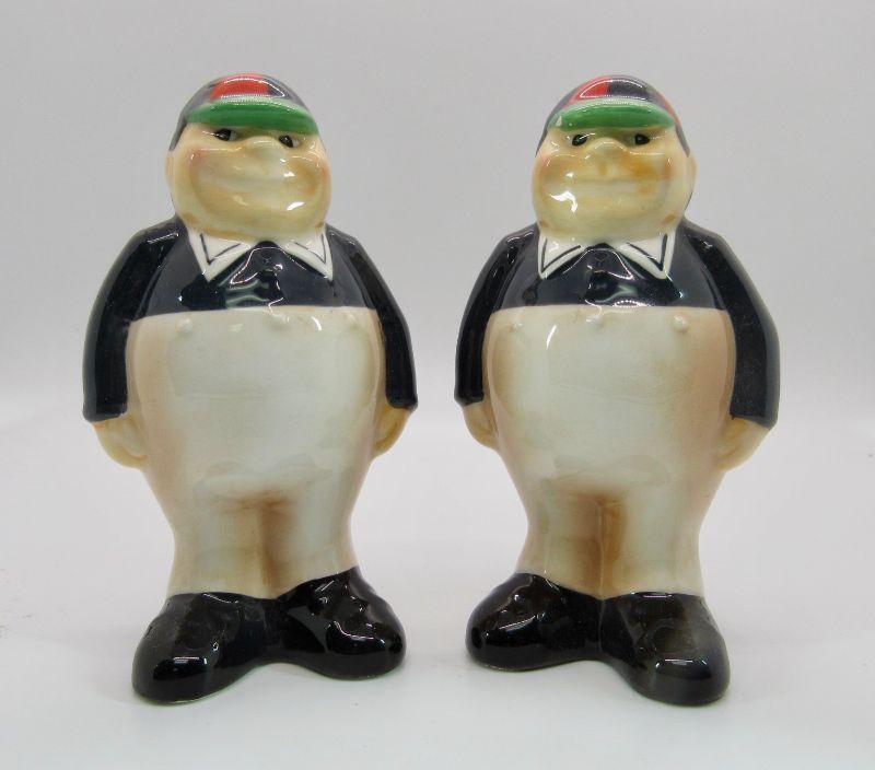 Ceramic Alice in Wonderland shaker set, Tweedle Dee & Tweedle Dum. Done by Paul Cardew 2004. Good condition.