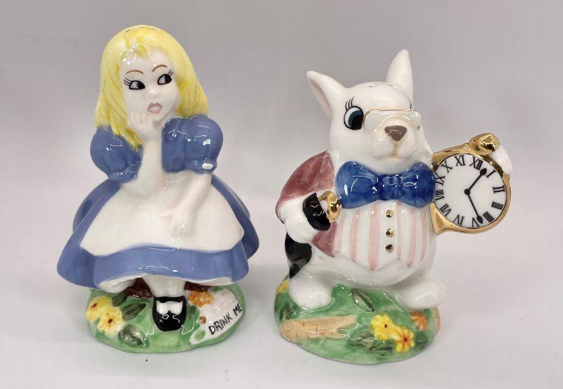 ALICE IN WONDERLAND SALT & PEPPER SET PAUL CARDEW ALICE & WHITE RABBIT