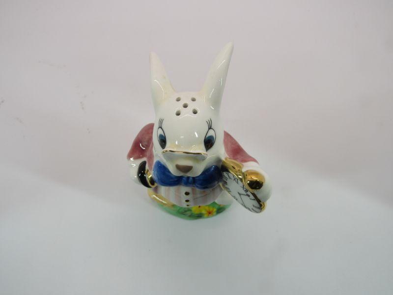 Ceramic Alice in Wonderland Salt & Pepper set by Paul Cardew. Set features Alice and the White Rabbit.