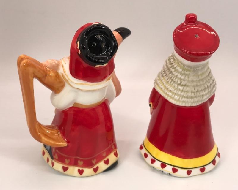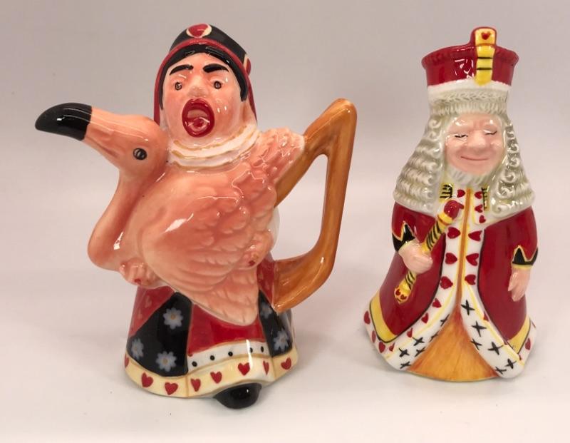 Ceramic Alice in Wonderland salt & pepper set, King and Queen of Hearts. Done by Paul Cardew 2004.