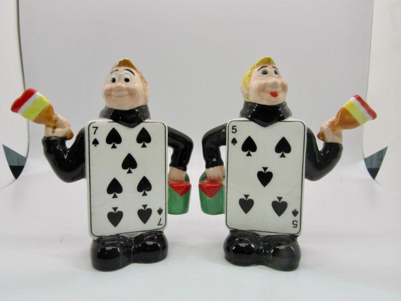 ALICE IN WONDERLAND SALT & PEPPER SET PAUL CARDEW FIVE & SEVEN OF SPADES CARDS
