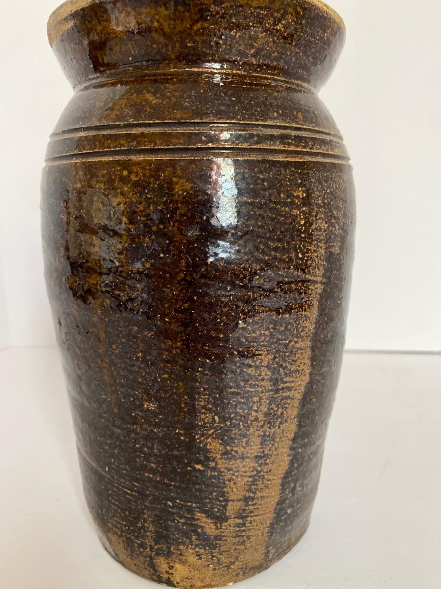 Alkaline Glaze Pottery Canning Jar, Possibly SC Pottery, 9in Tall