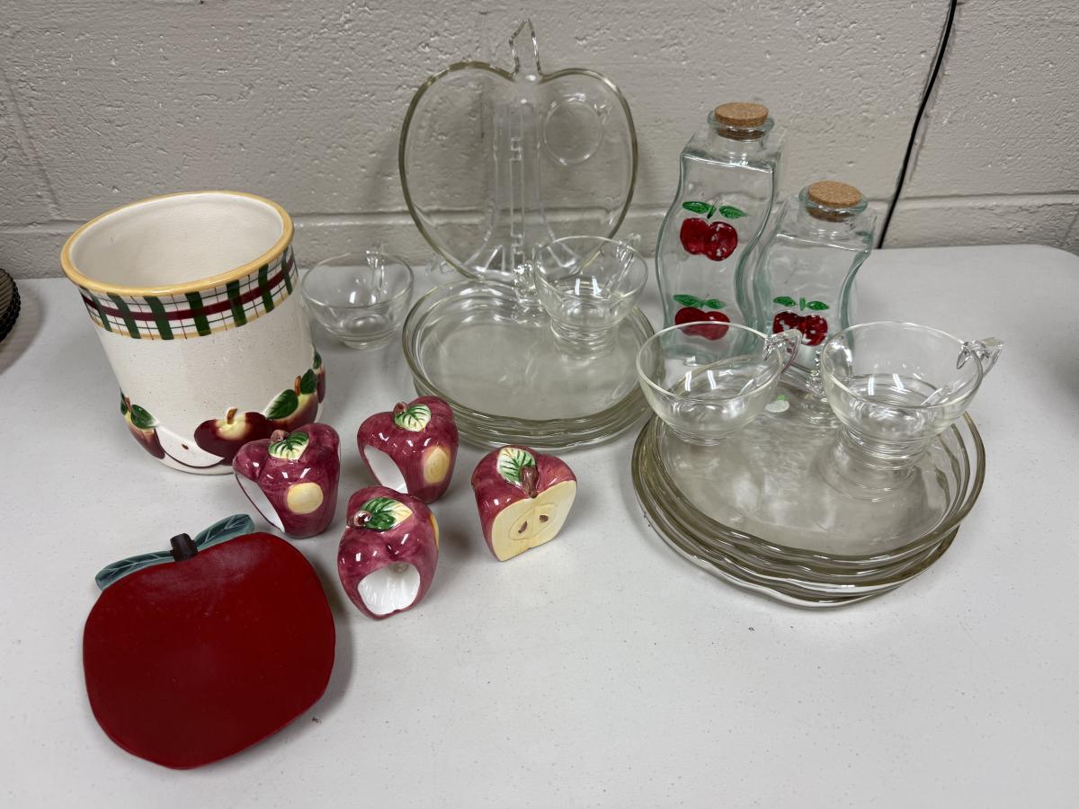 Wooden dish, Yankee candle holder, glass canisters, 8 snack plates w4 cups, 4 napkin holders