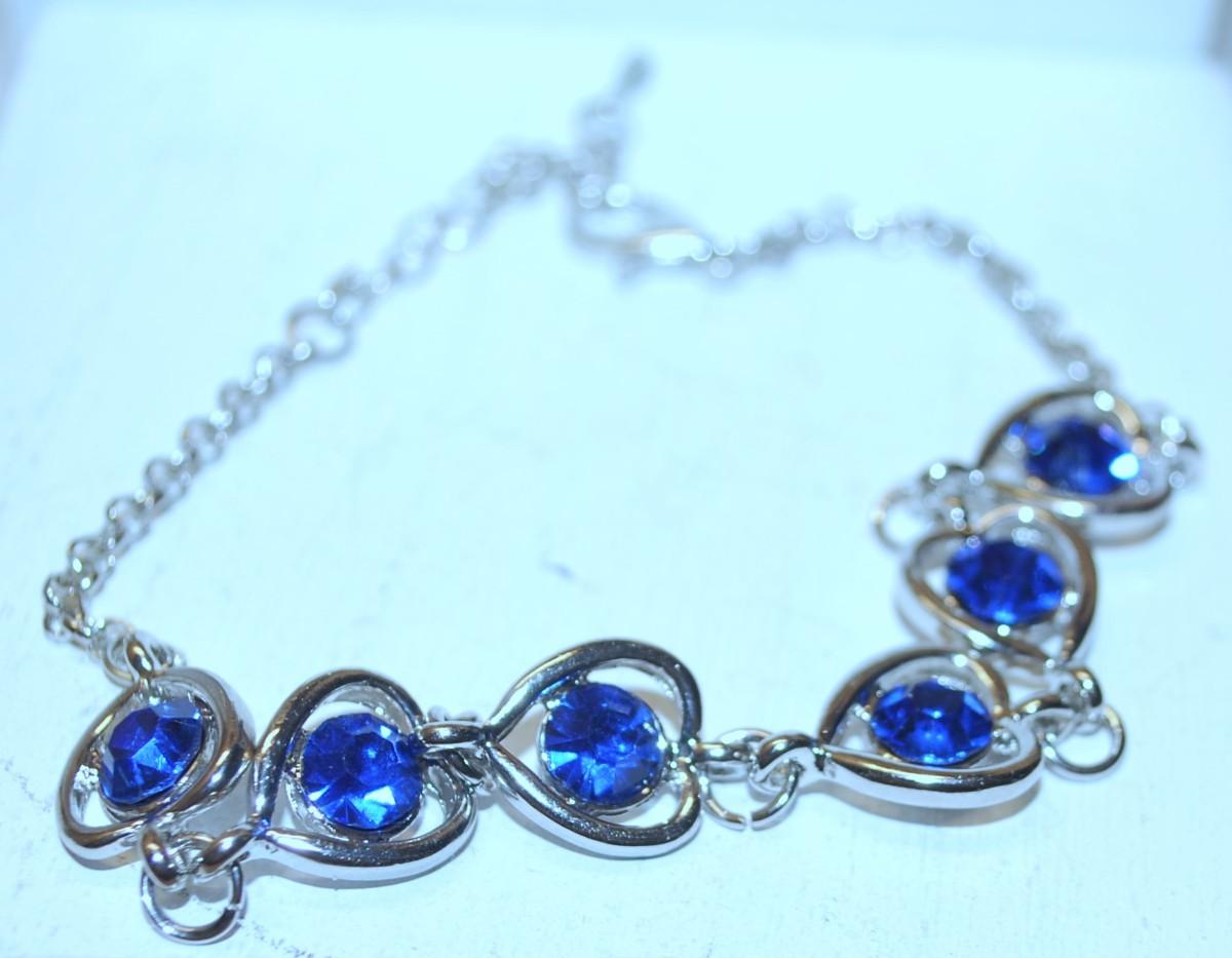 All BLUE HEARTS Stones Setting Bracelet (10") with a Silver Tone Chain