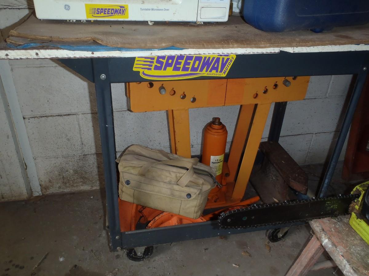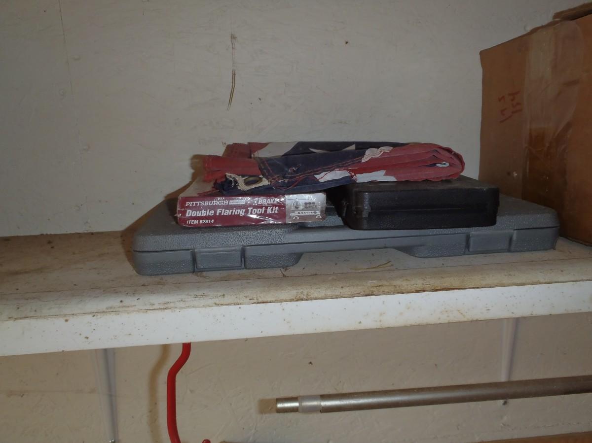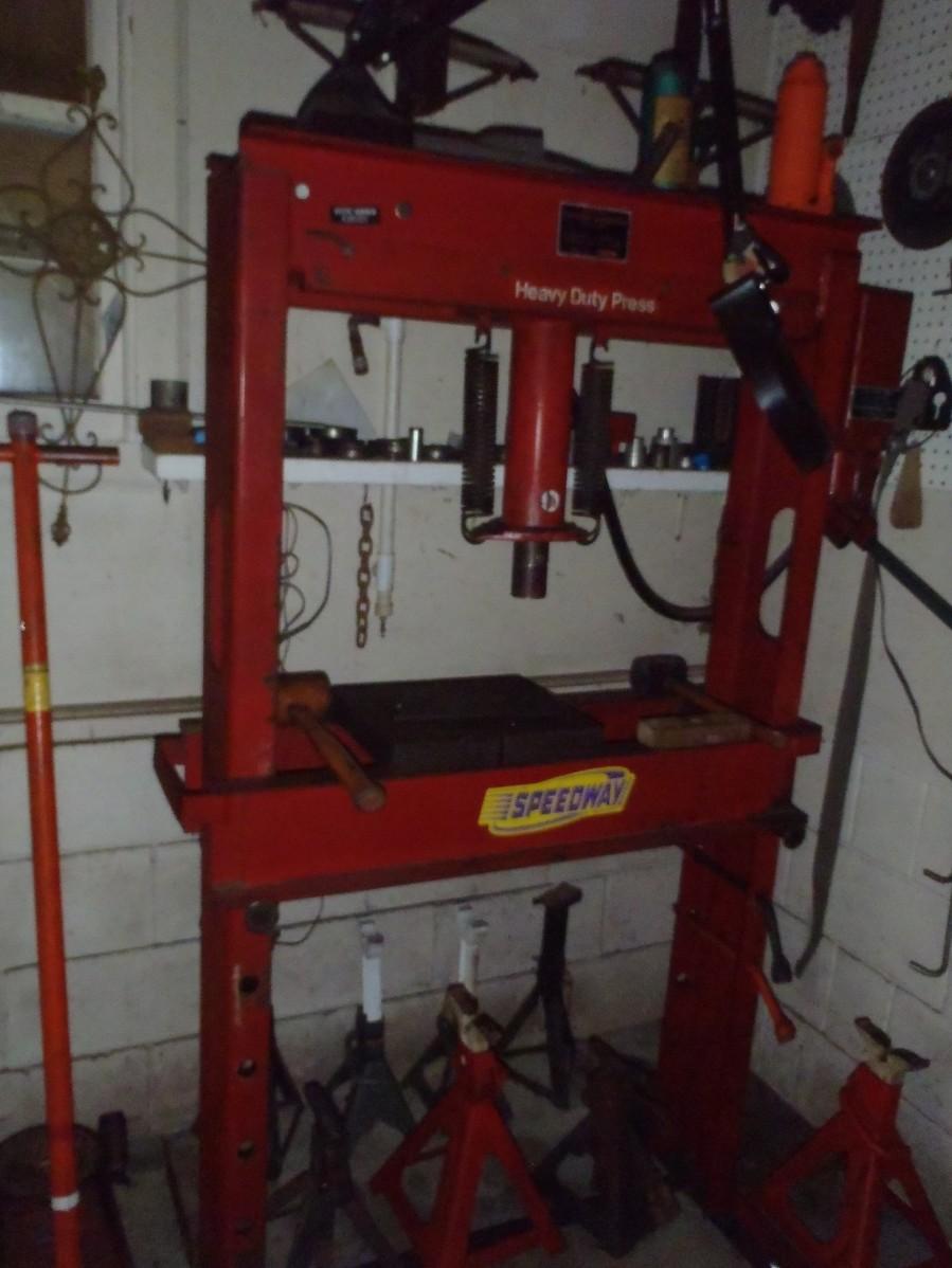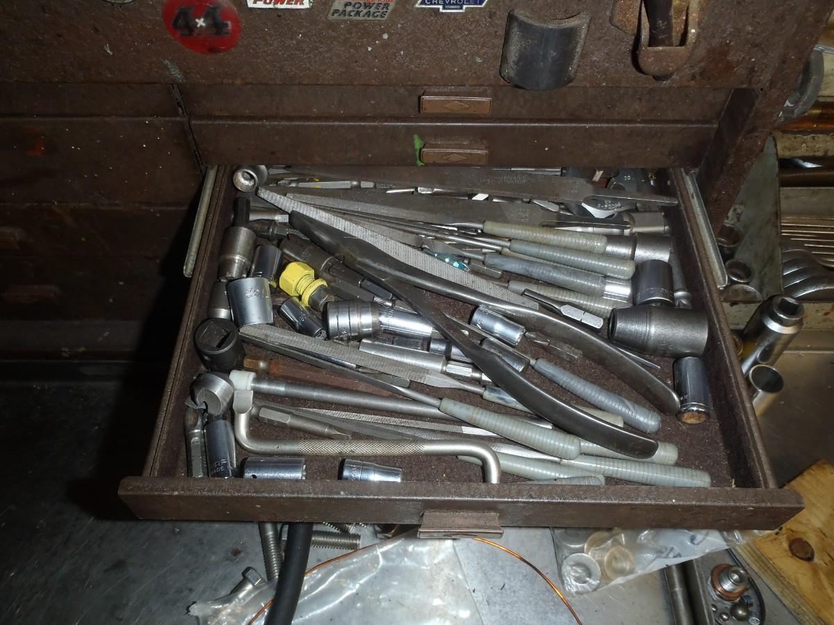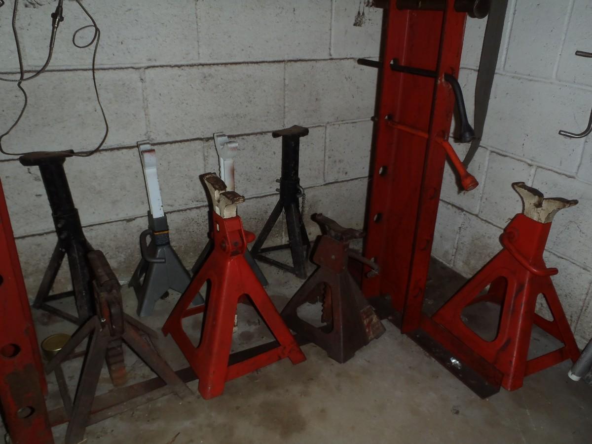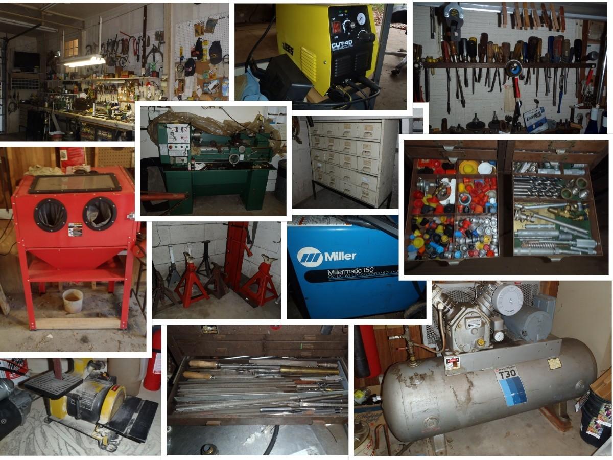 tools; hand tools; drills; sand blaster; compressor; engine hoist; engine stand; jack stands; floor jacks; drill press; TV; hand trucks; tool boxes; files;