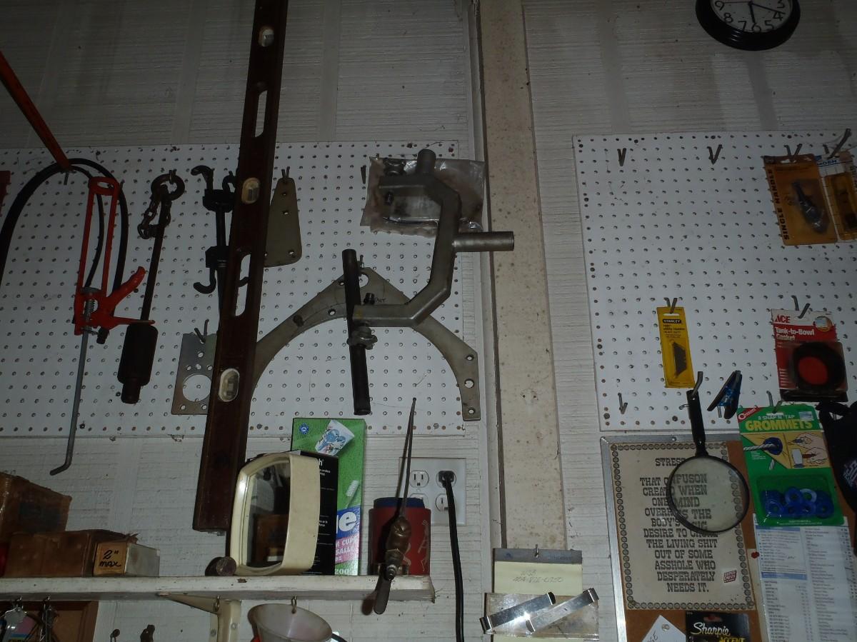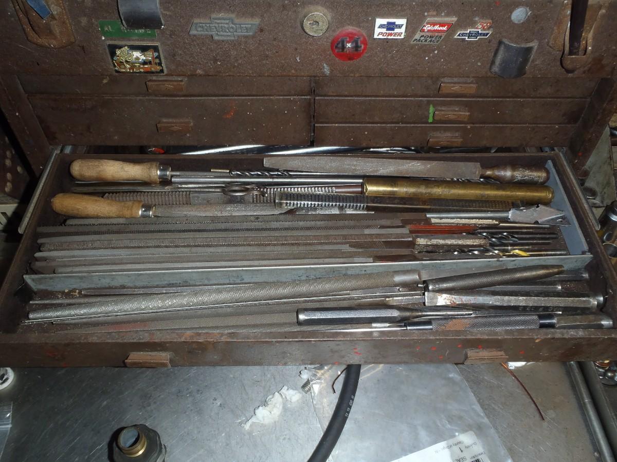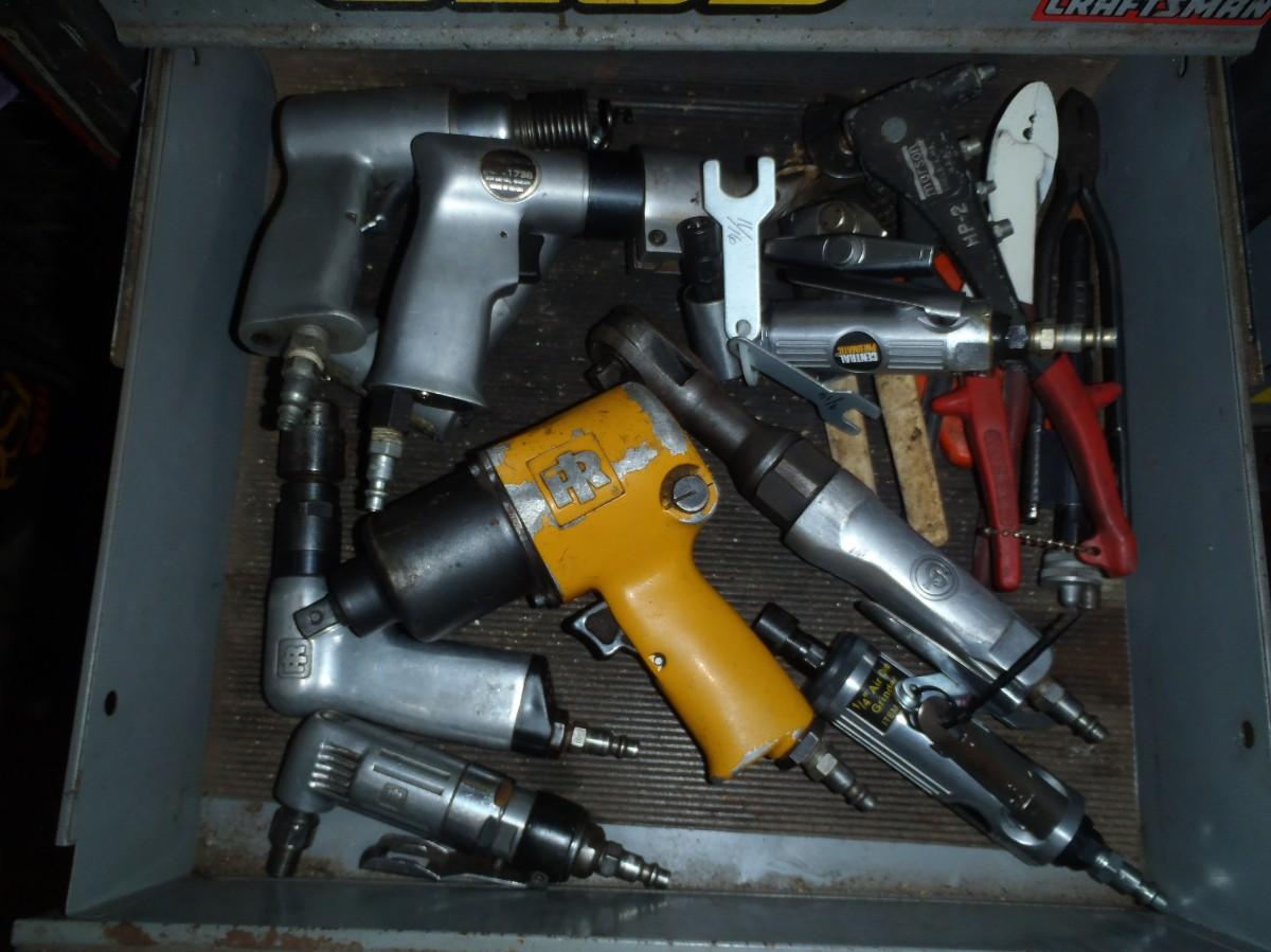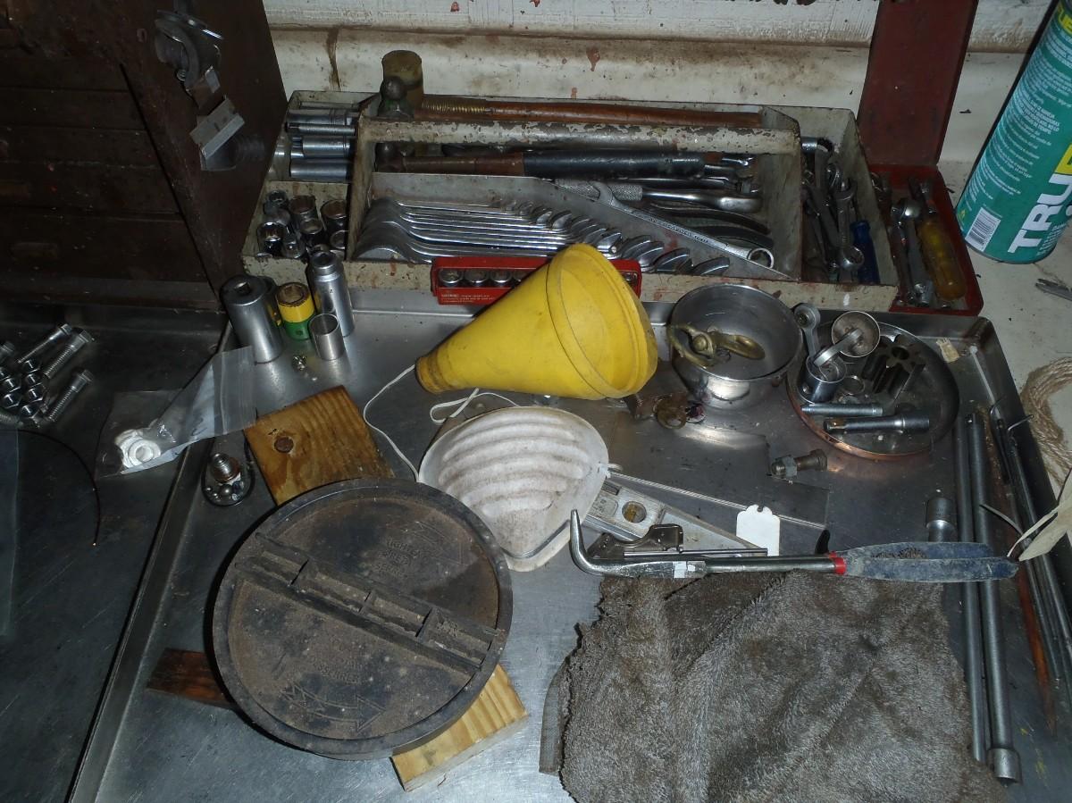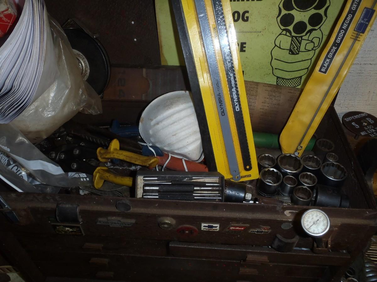 tools; hand tools; drills; sand blaster; compressor; engine hoist; engine stand; jack stands; floor jacks; drill press; TV; hand trucks; tool boxes; files;