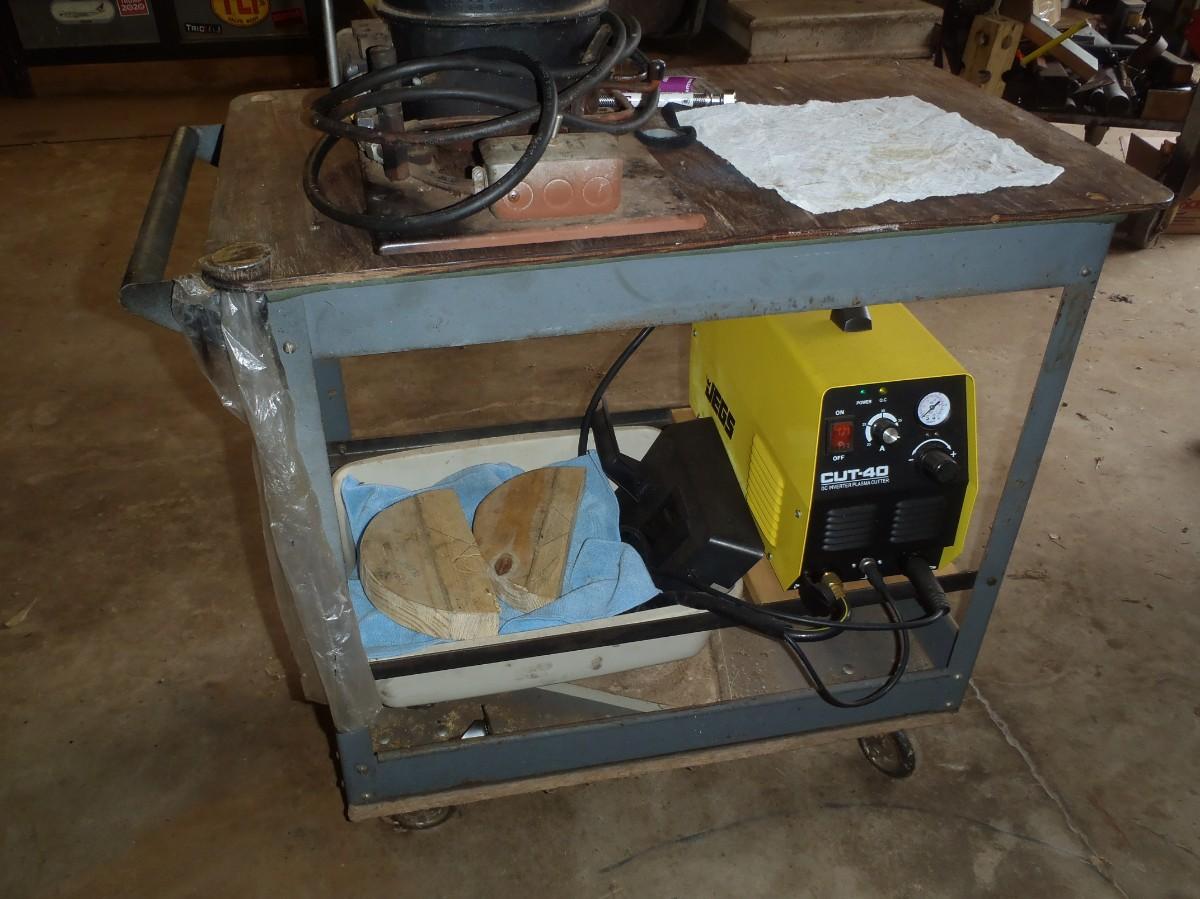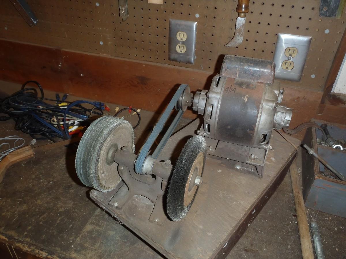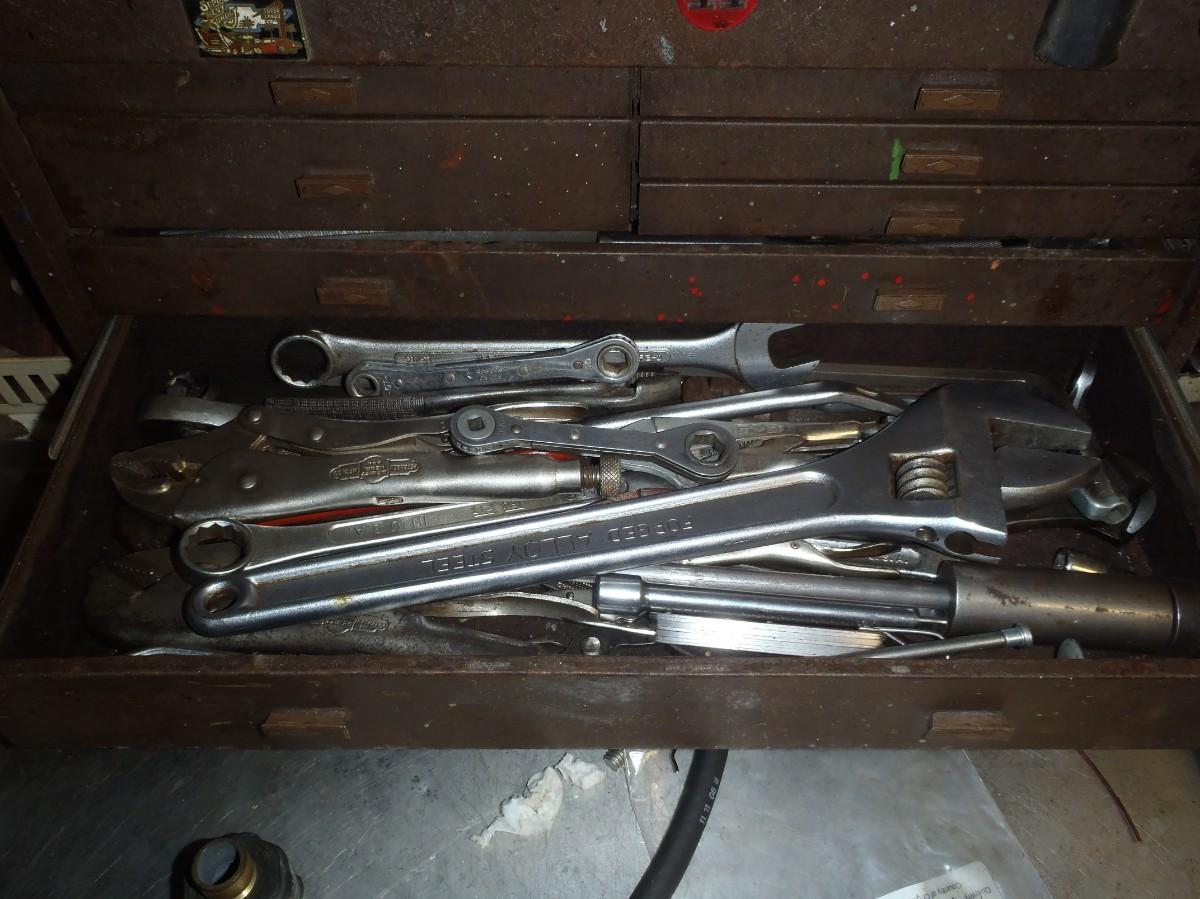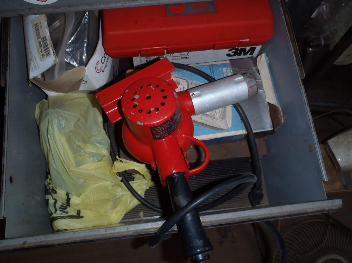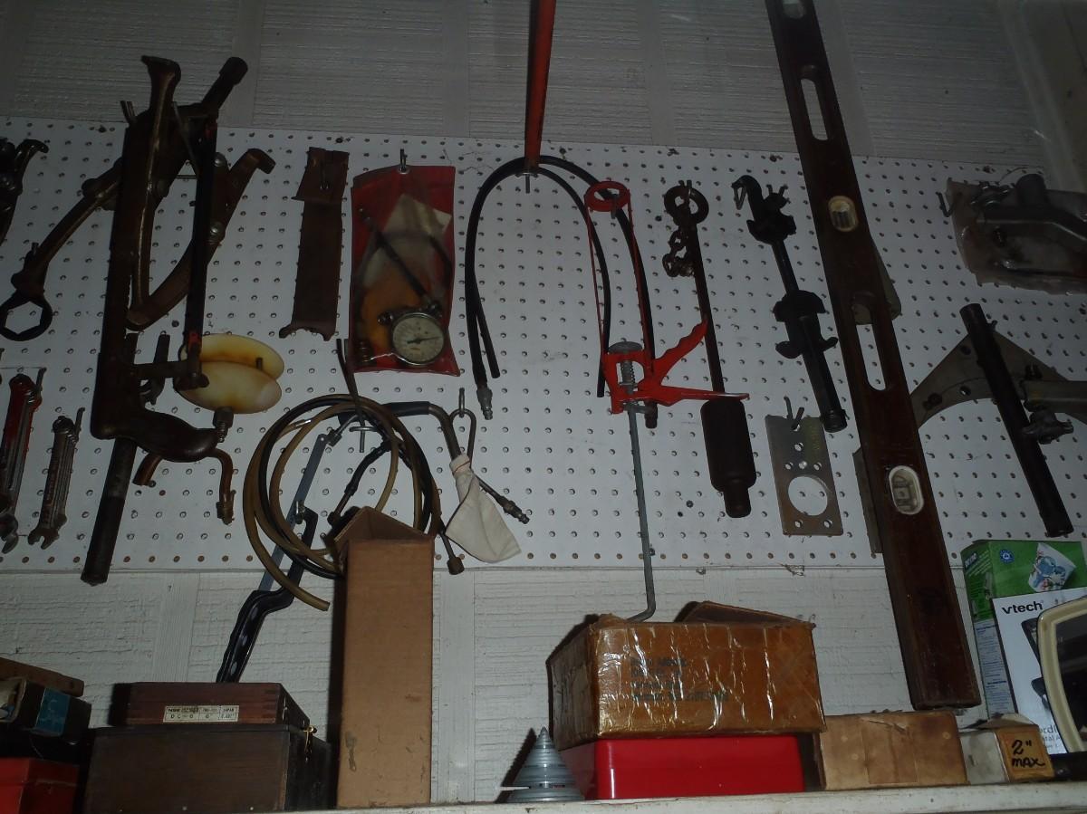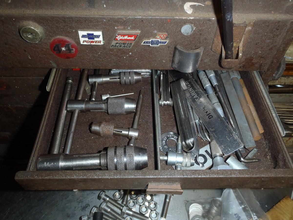 tools; hand tools; drills; sand blaster; compressor; engine hoist; engine stand; jack stands; floor jacks; drill press; TV; hand trucks; tool boxes; files;
