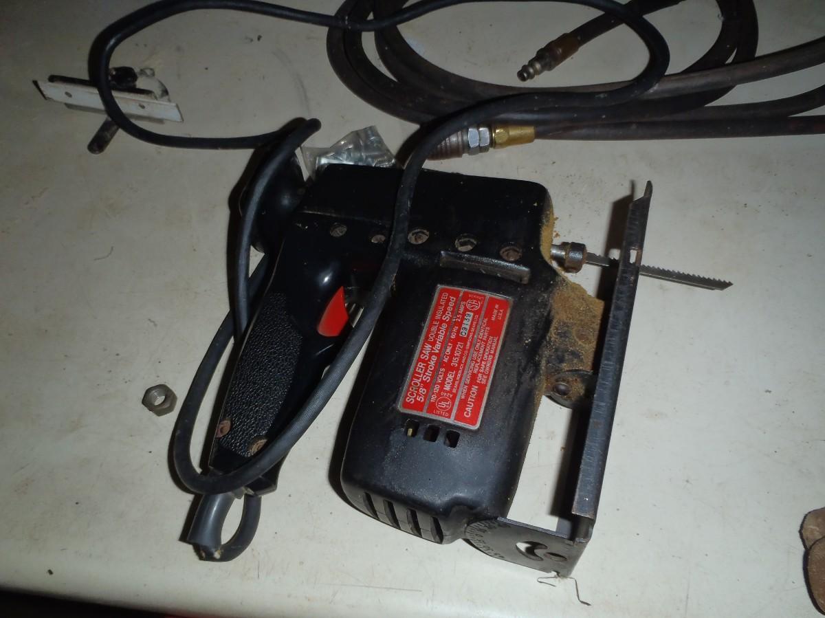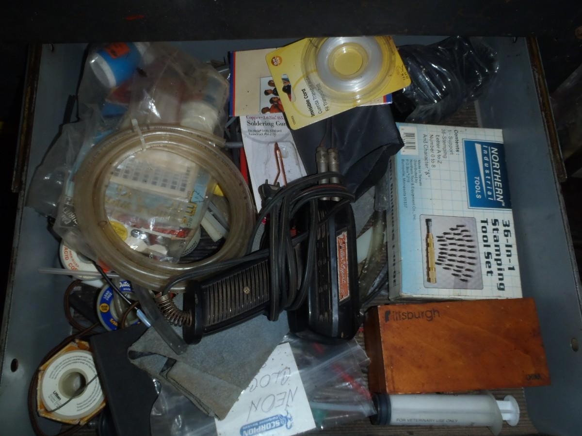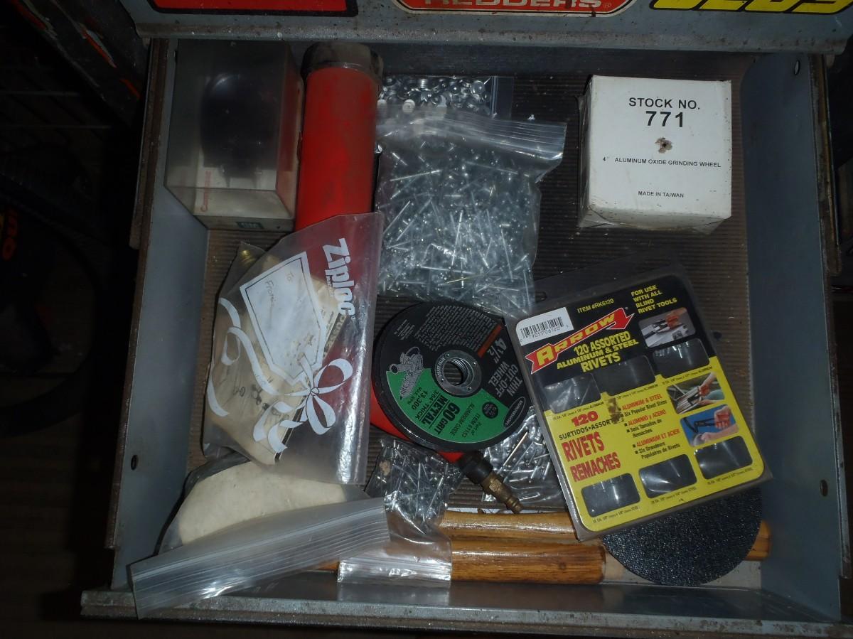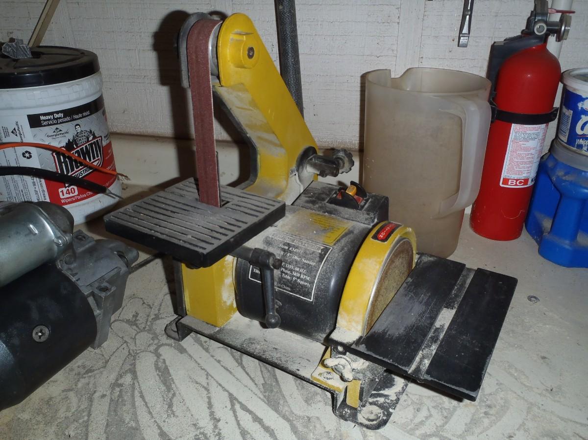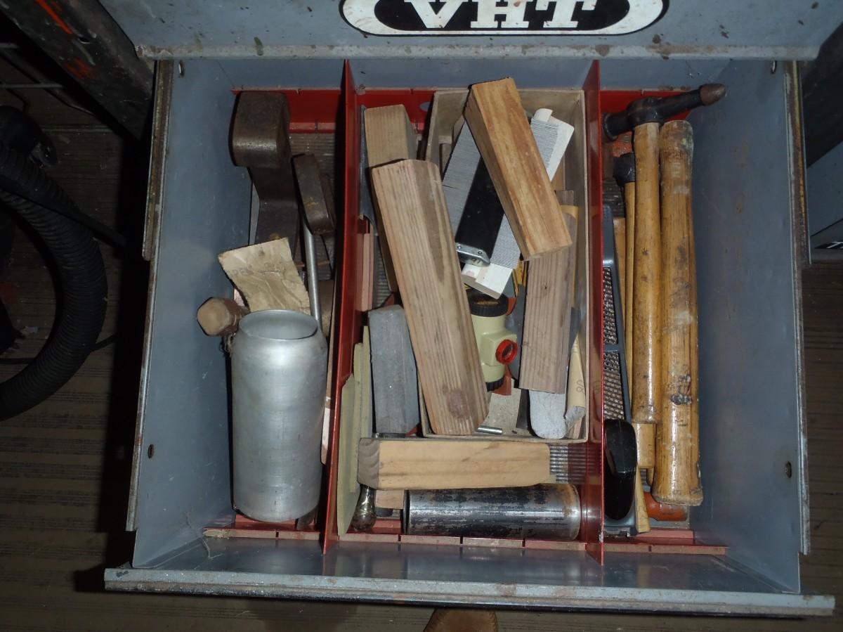 tools; hand tools; drills; sand blaster; compressor; engine hoist; engine stand; jack stands; floor jacks; drill press; TV; hand trucks; tool boxes; files;