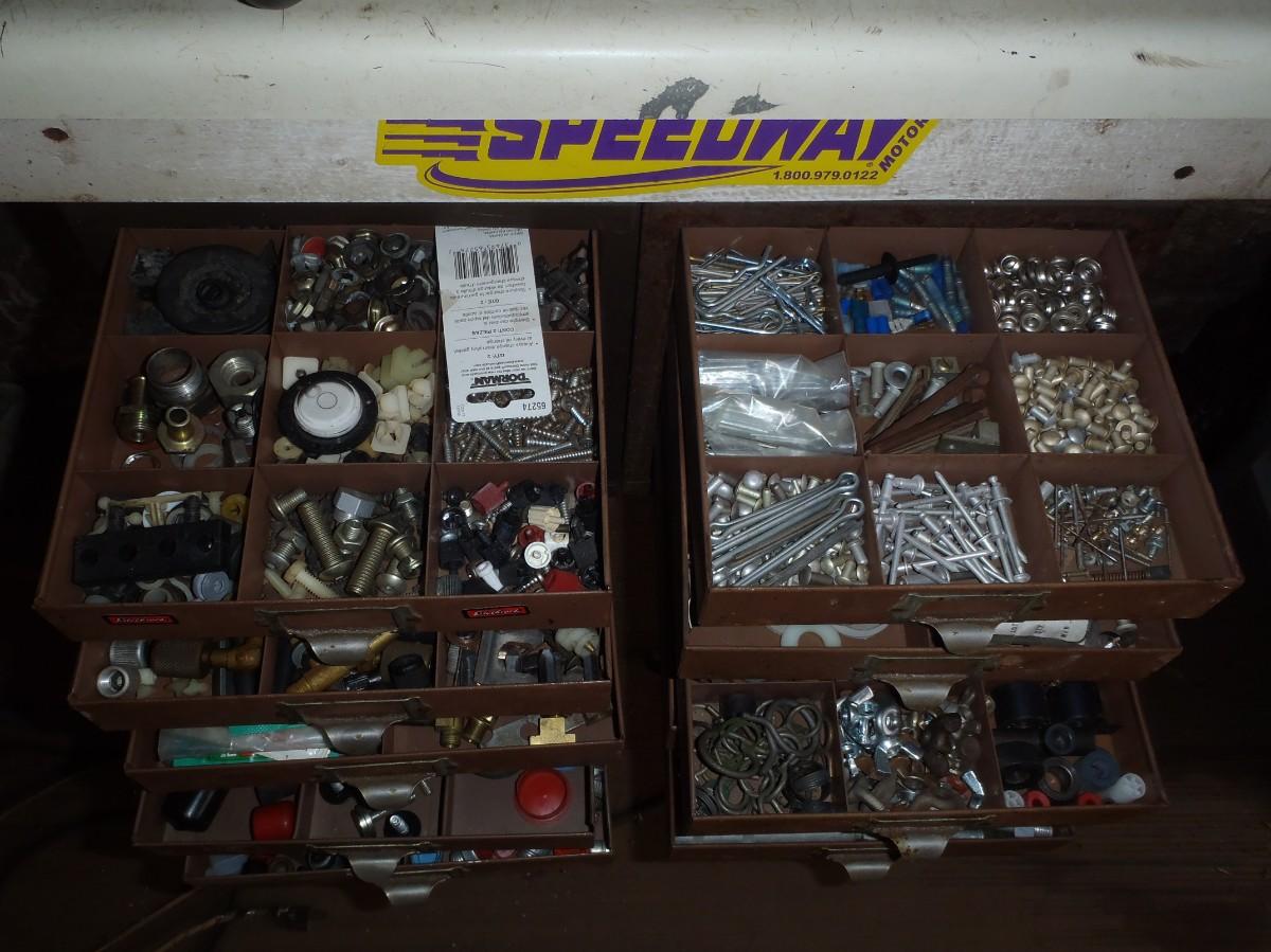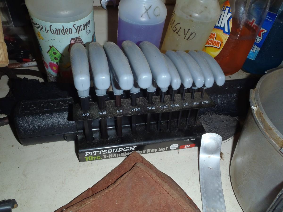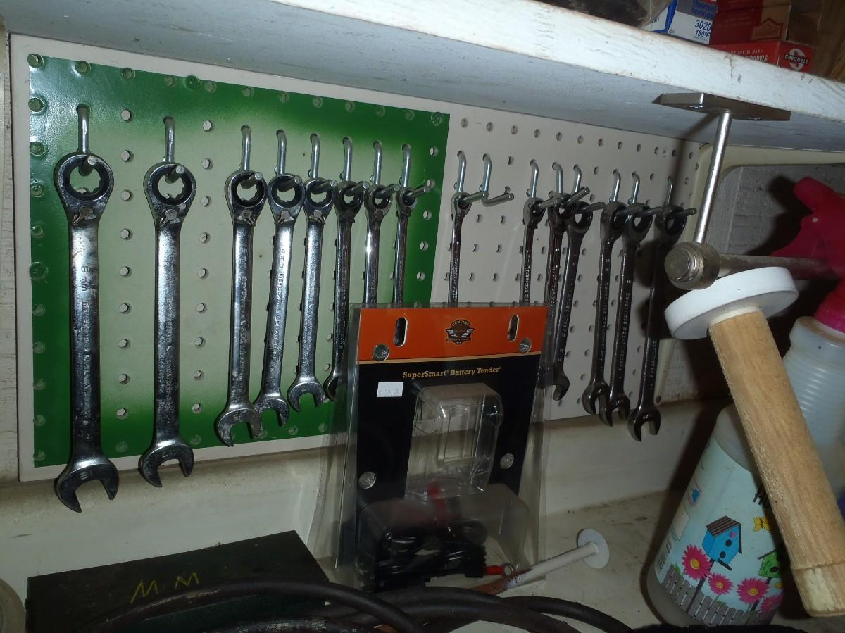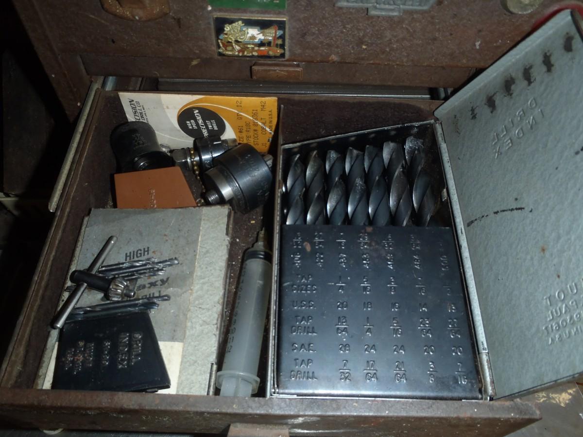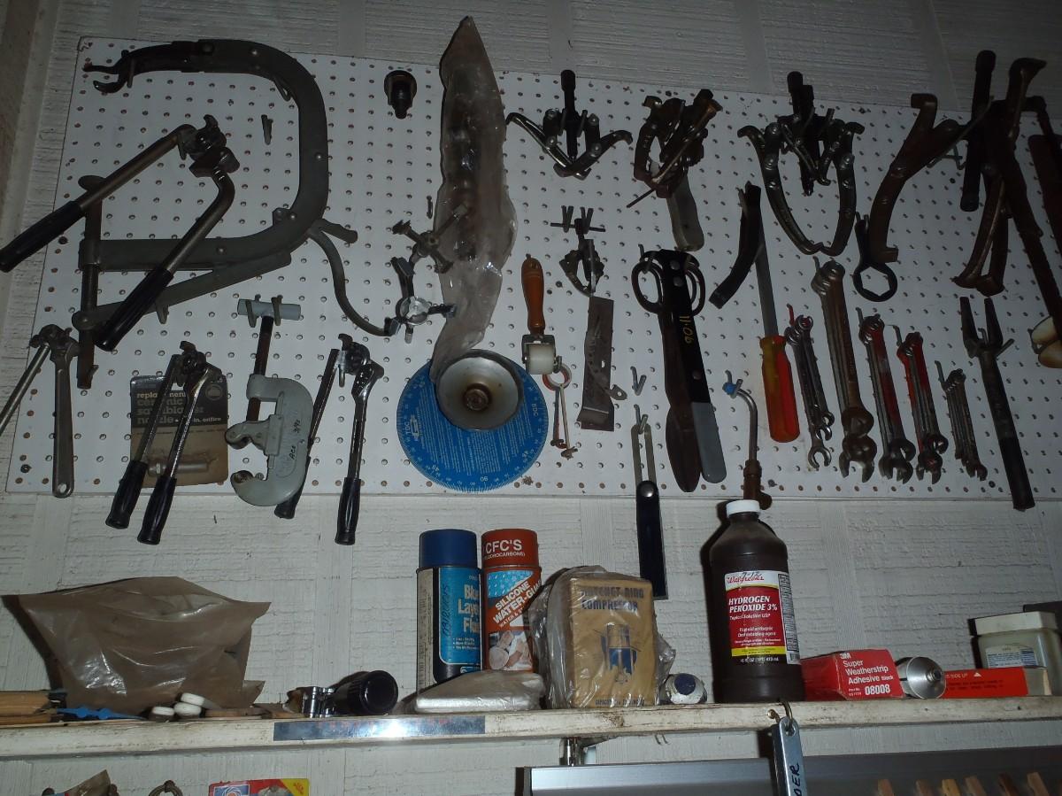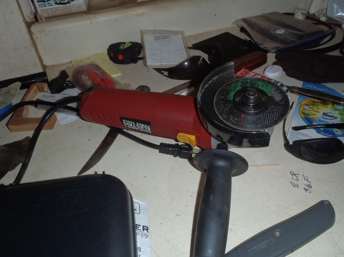 tools; hand tools; drills; sand blaster; compressor; engine hoist; engine stand; jack stands; floor jacks; drill press; TV; hand trucks; tool boxes; files;