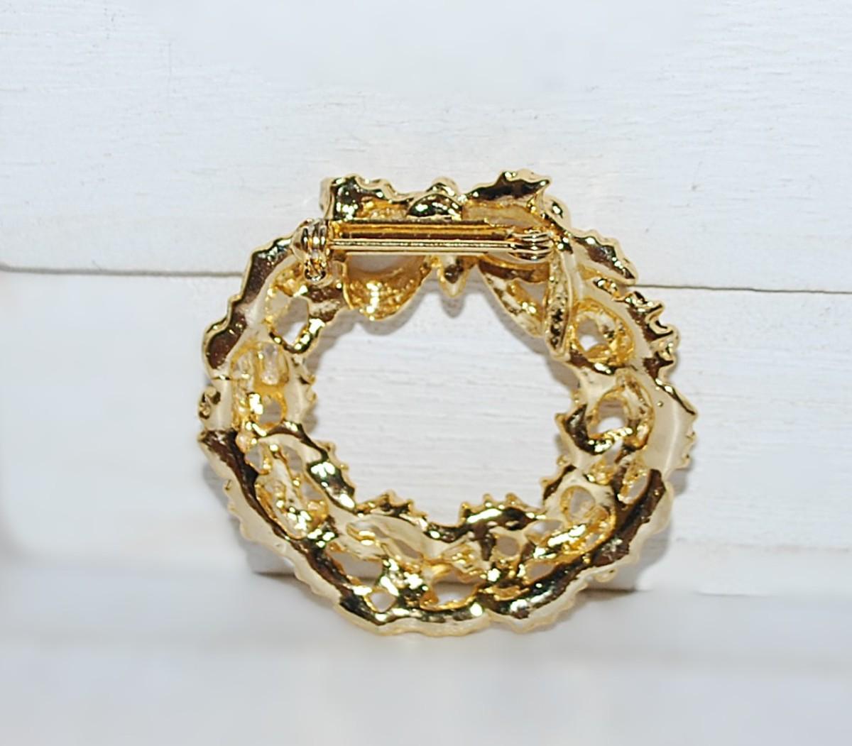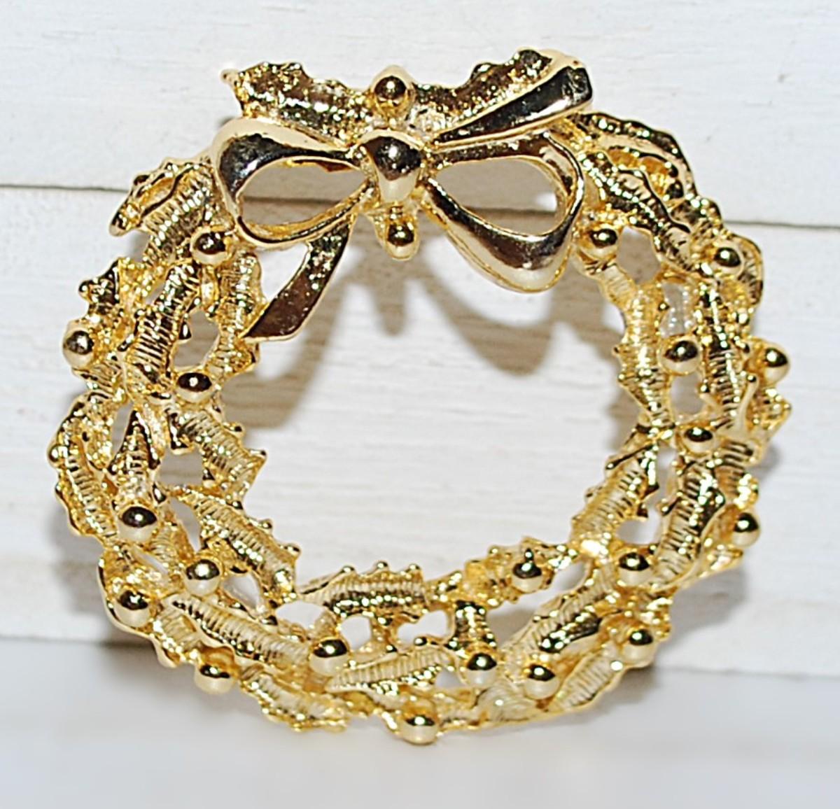 All Gold Colored "WREATH & BOW" BROOCH (1½" Diam.) on a Gold Tone Setting