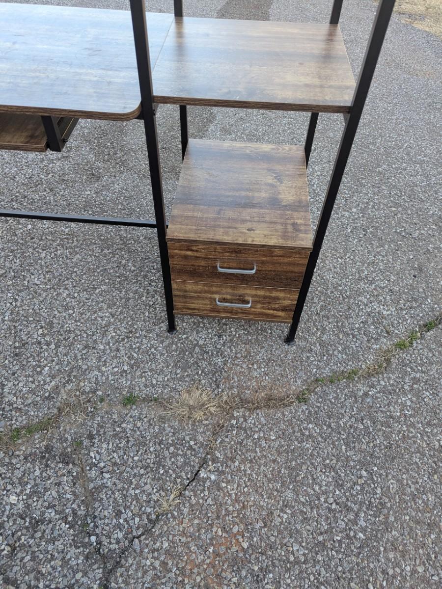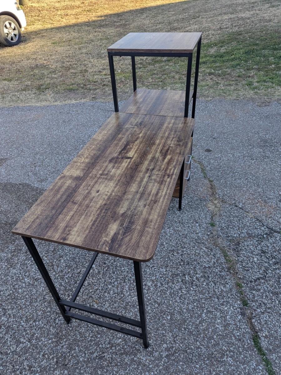 All in one computer desk with shelves and drawers 55 in long 20 in deep 43.5 in tall
