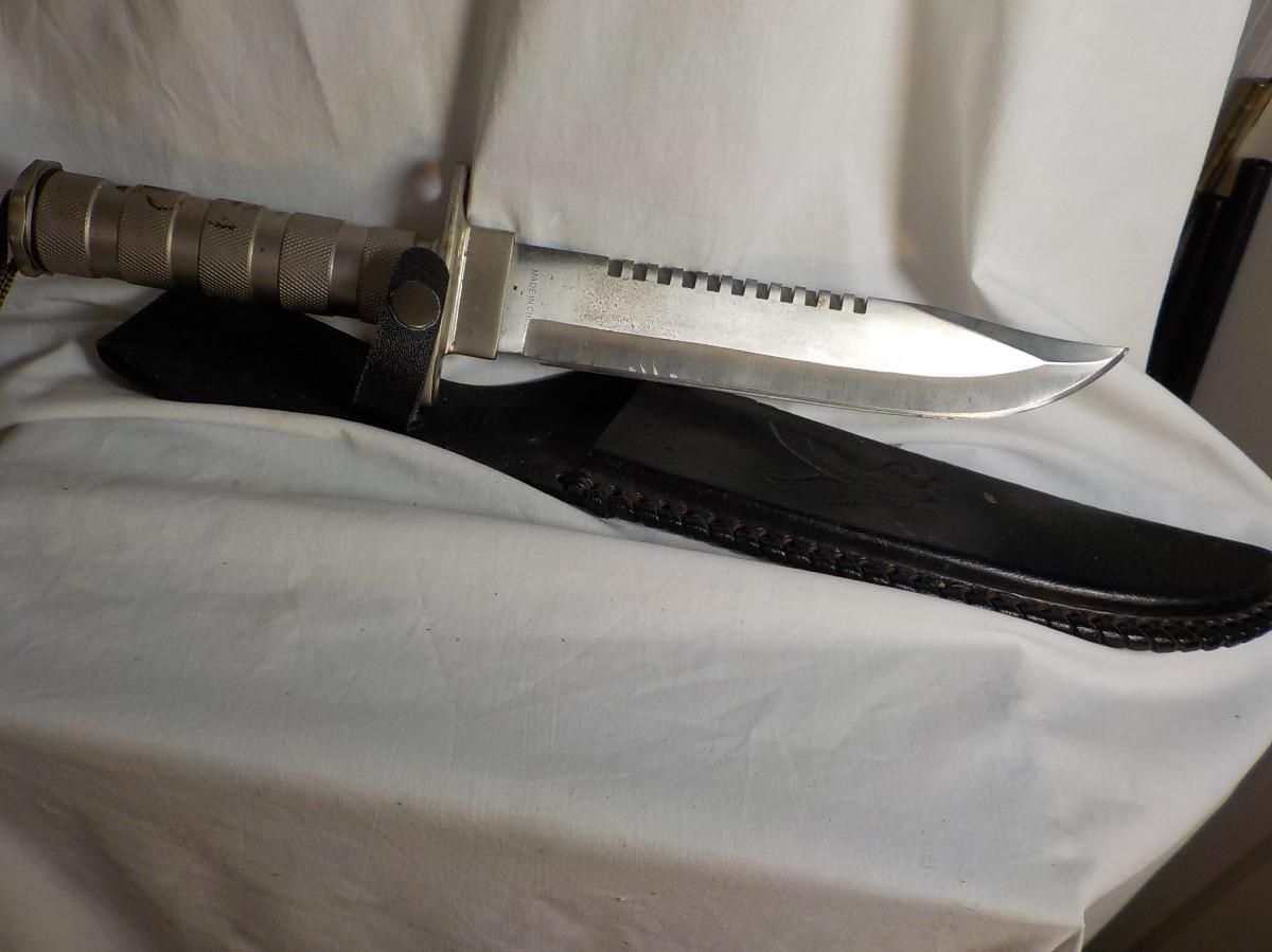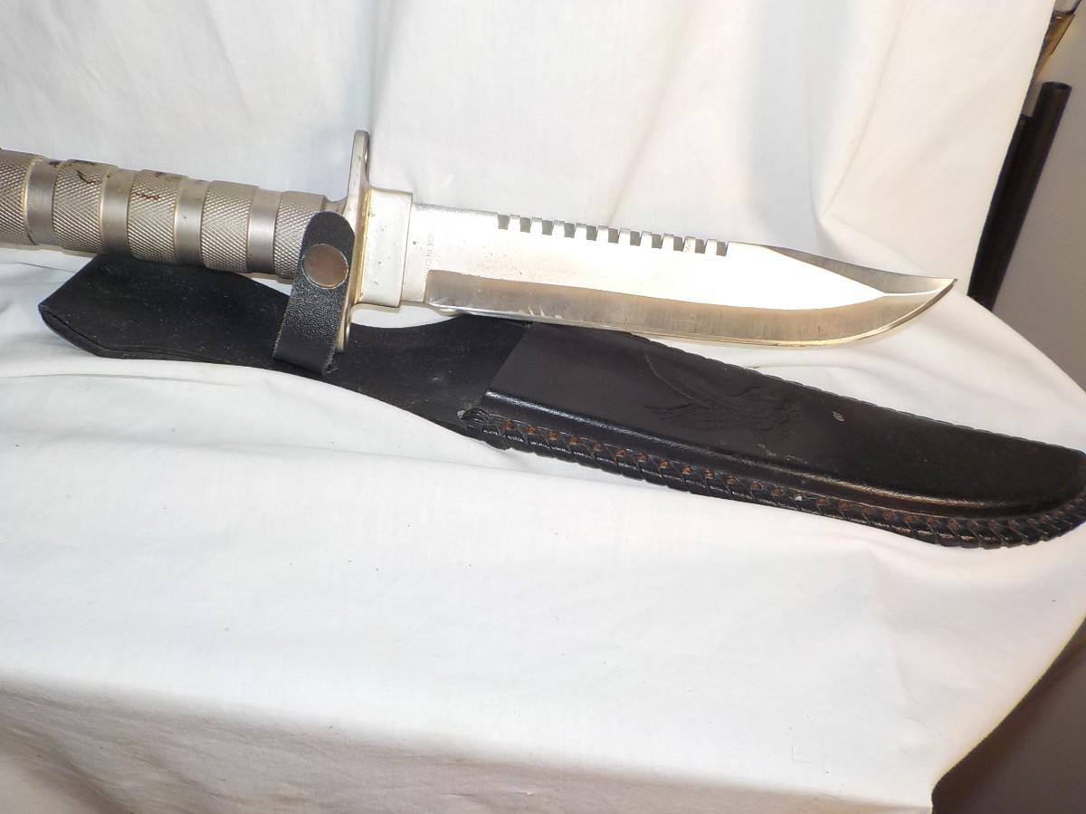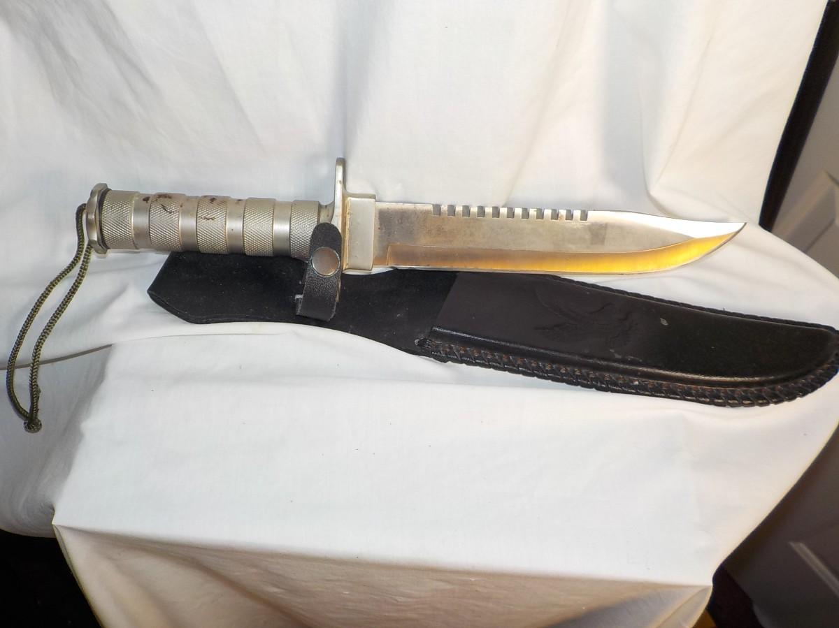 All metal Bowie Knife 12 in and survivle in handle/ est. $20 to $50.