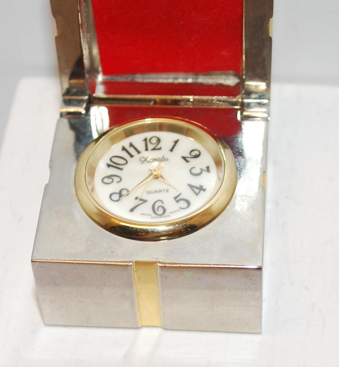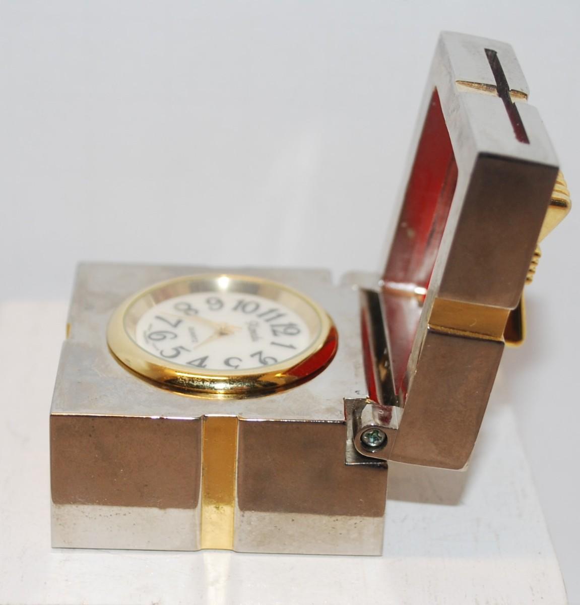 All Metal Cubed & Hinged Box with "Xanadu" Quartz Clock 1¾" x 1¾" x 1½" H