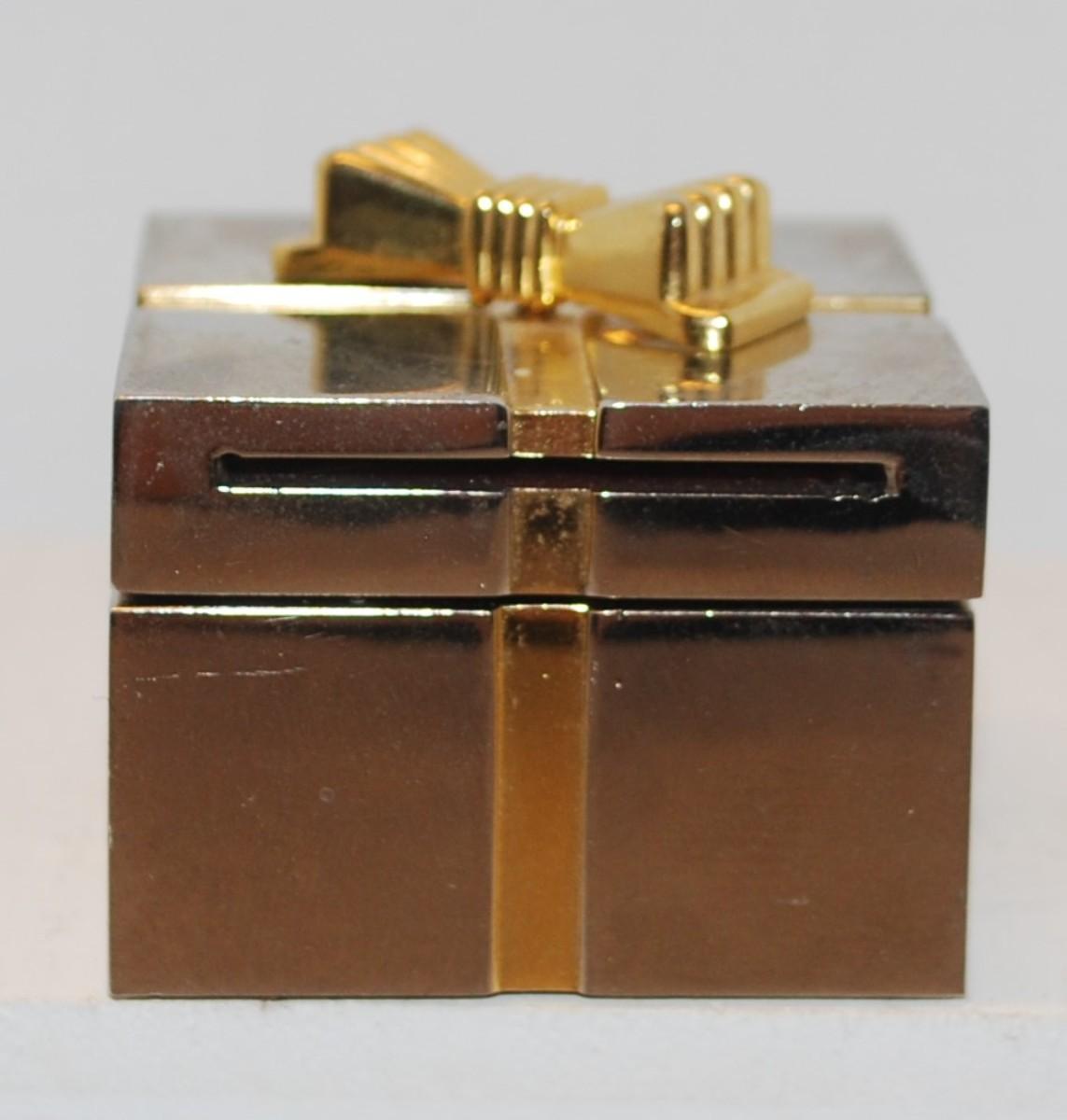 All Metal Cubed & Hinged Box with "Xanadu" Quartz Clock 1 ¾" x 1 ¾" x 1½" H