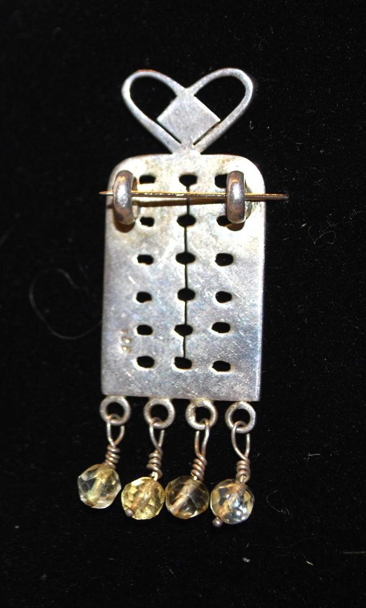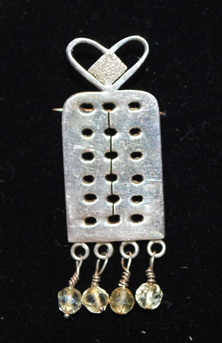 All Metal Perforated Double Hook PENDANT with Dangle Stones 2" L