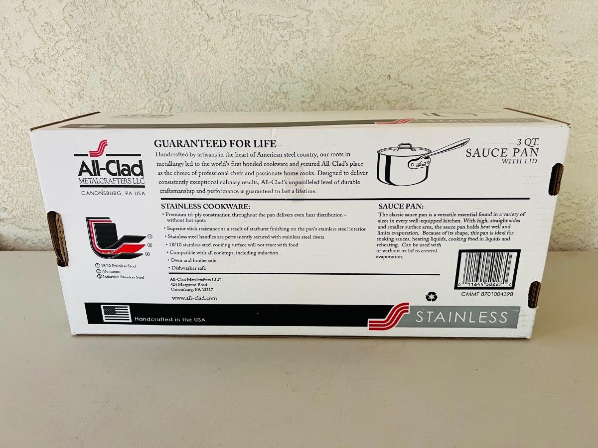 New In Box All-Clad 3 Quart Stainless Sauce Pan