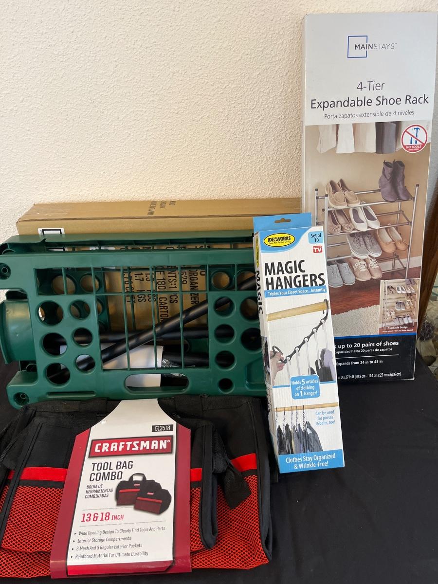 All NIB - craftsman tool bag, shoe rack, tool organizer, Magic hangers