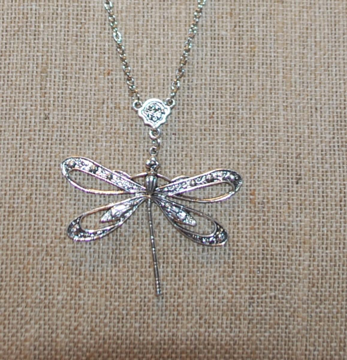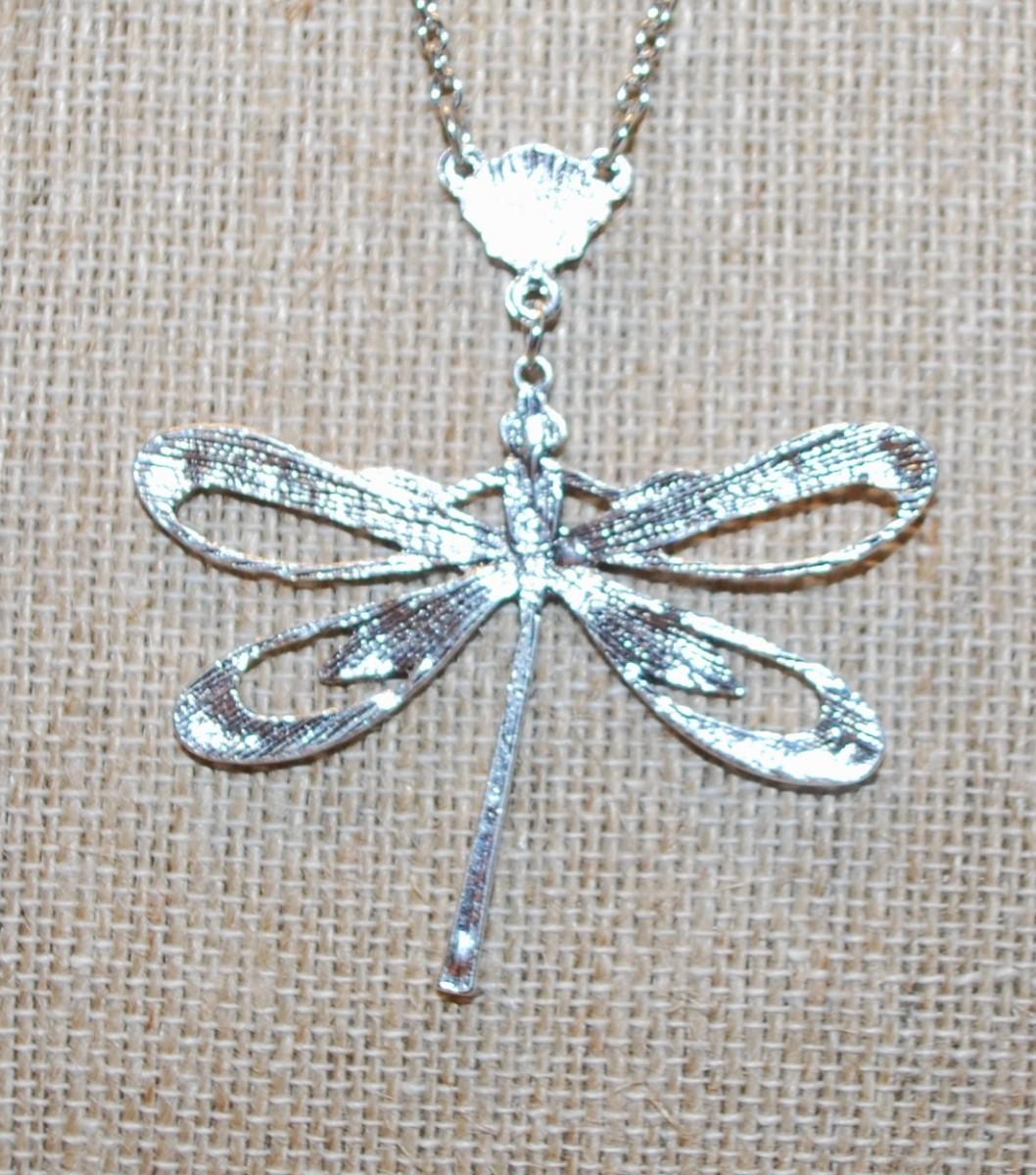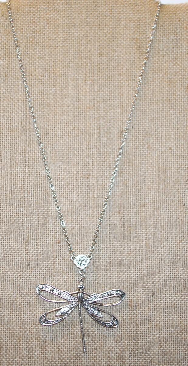 All Silver Tone Dragonfly PENDANT (2¼" x 2") on a Silver Tone Necklace Chain 17" L