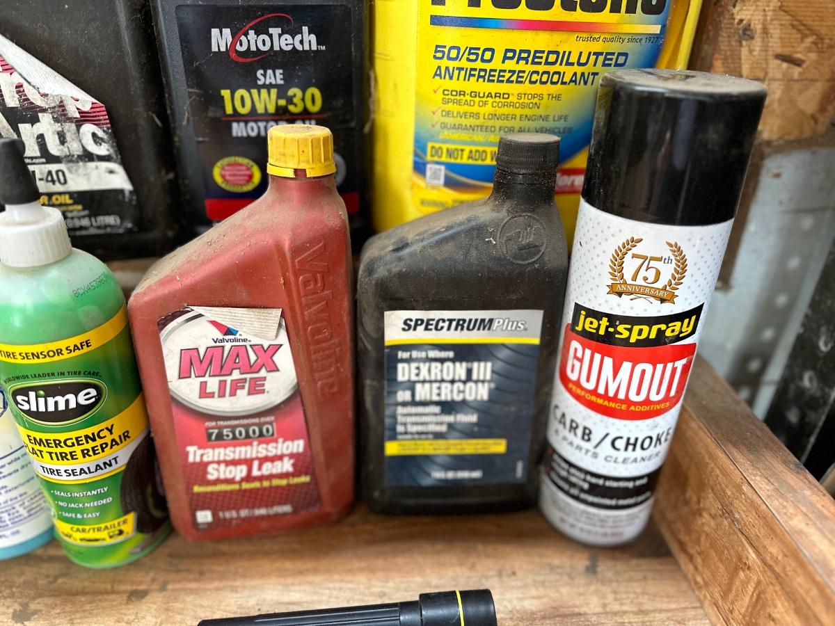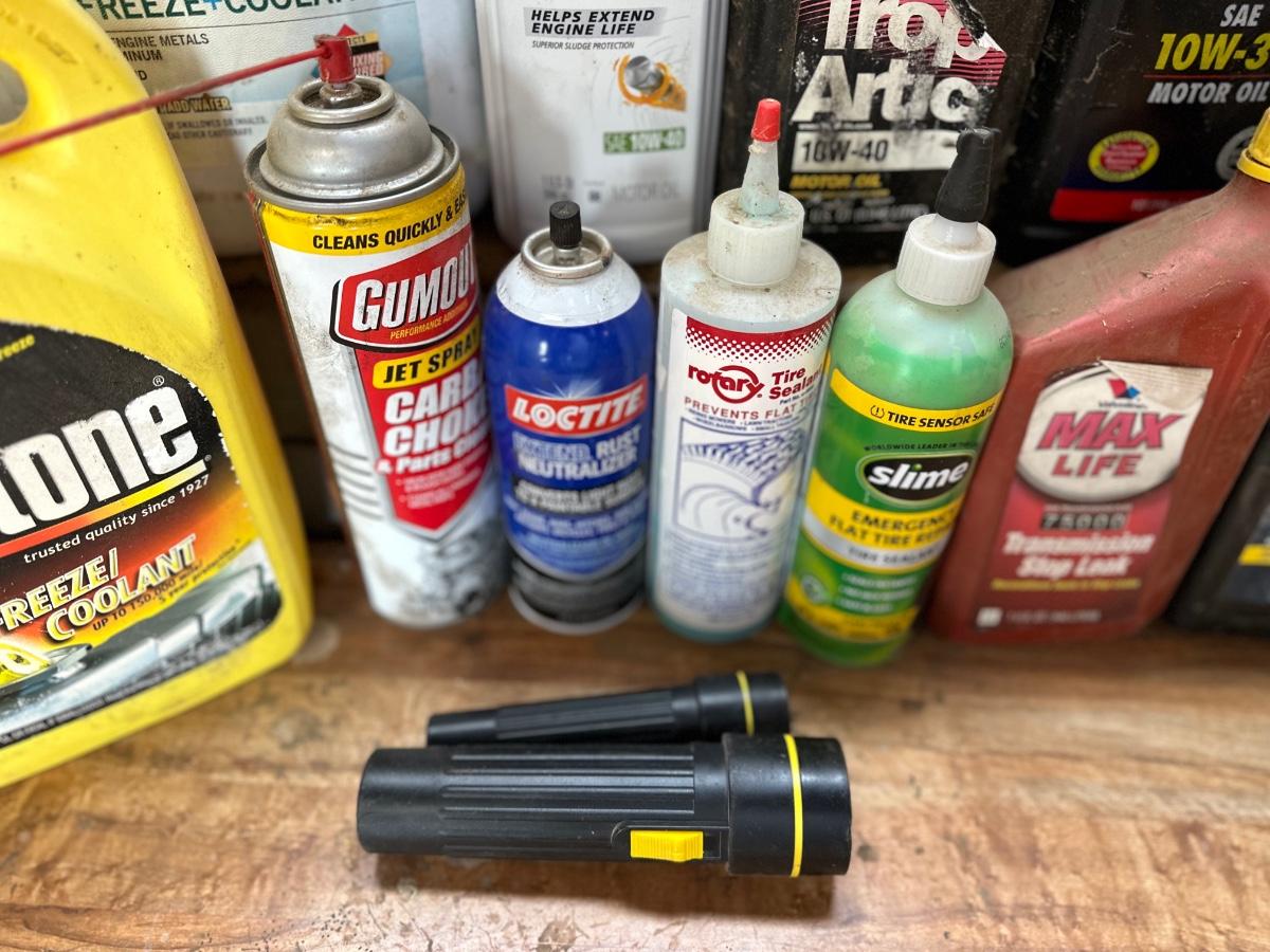 ALSO FLASHLIGHTS, AND RUST NEUTRALIZER, AND SOME FIX-A FLAT IN THE GREEN SLIME FORM.
