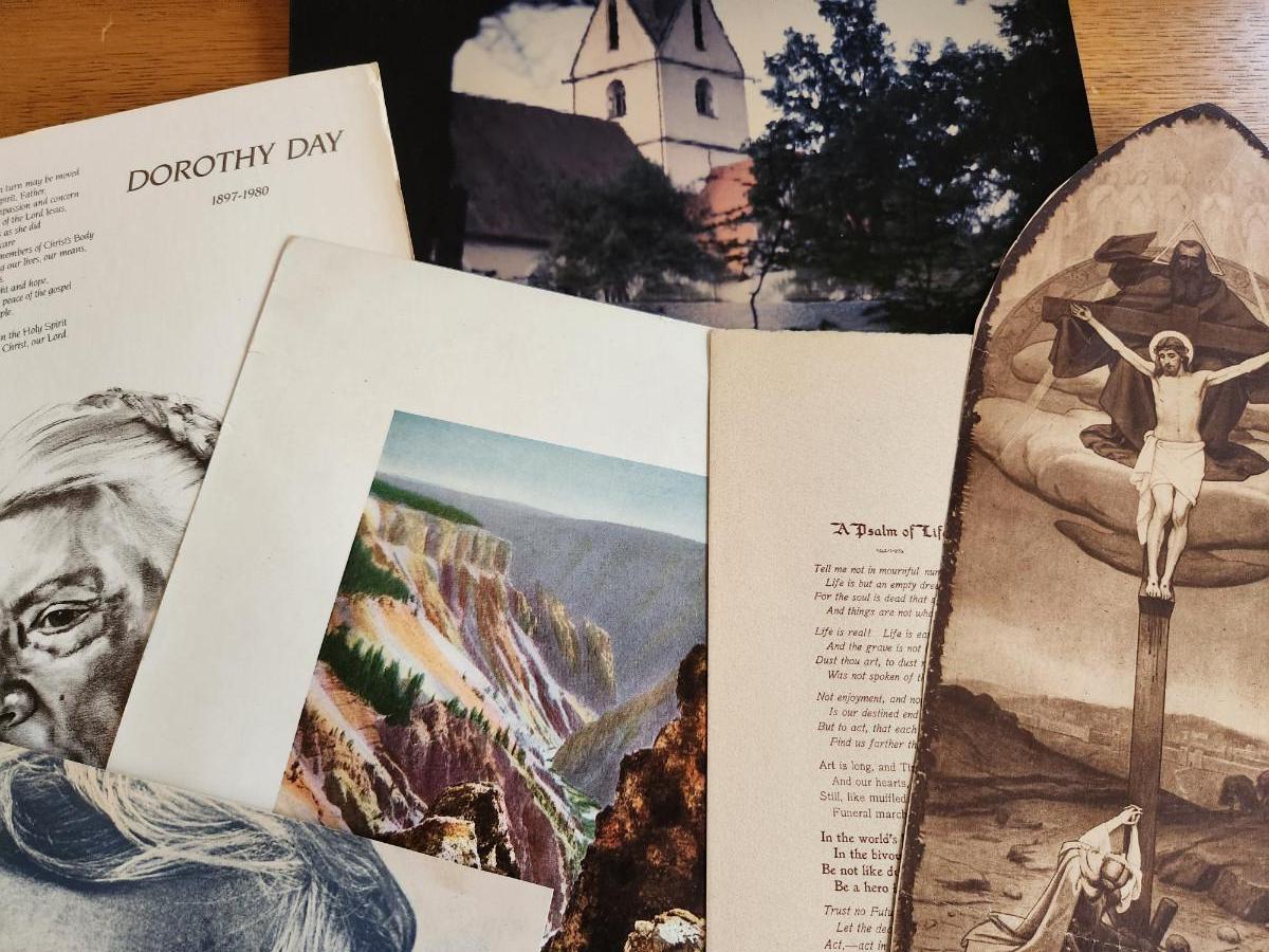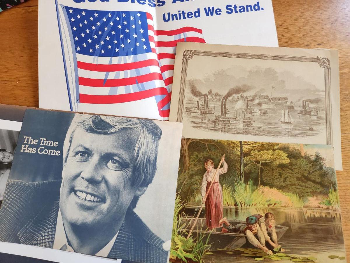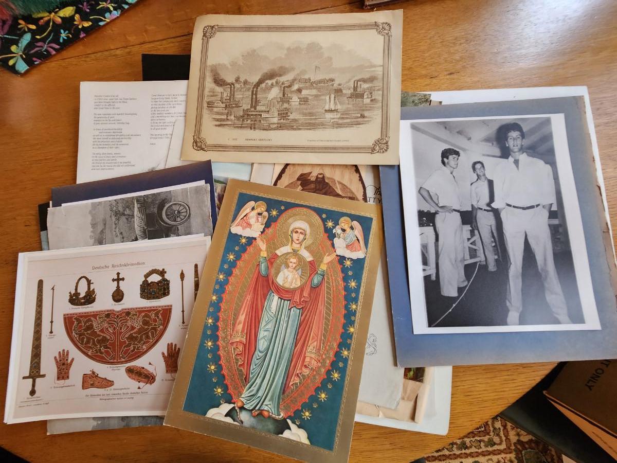 This auction lot is for a Folder of Frameable Art found in the Desk Drawer. These are larger pictures, prints and photos found in the bottom drawer of the old desk. Could be used for any craft or art project. Some vintage, some newer.