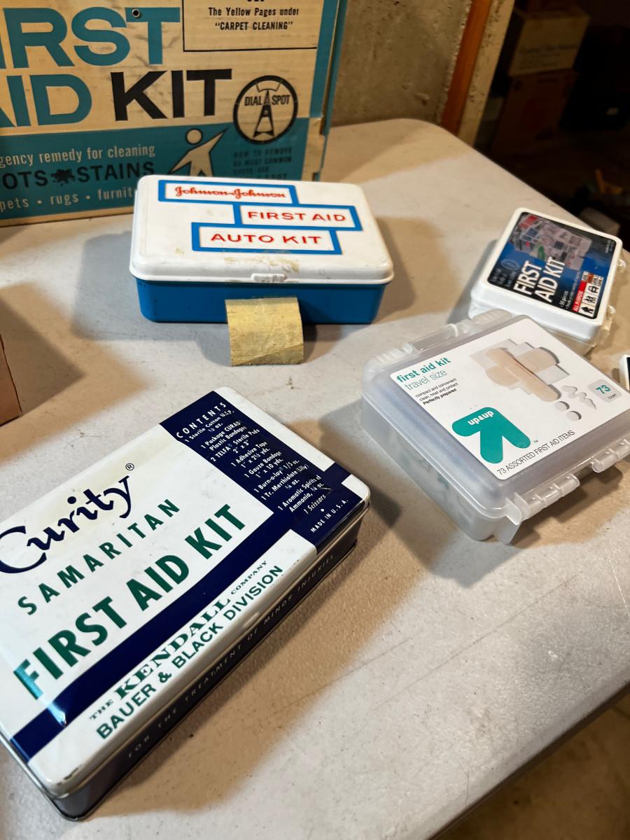 or First Aid Kits through the ages. NEW sealed and Could go in a display.