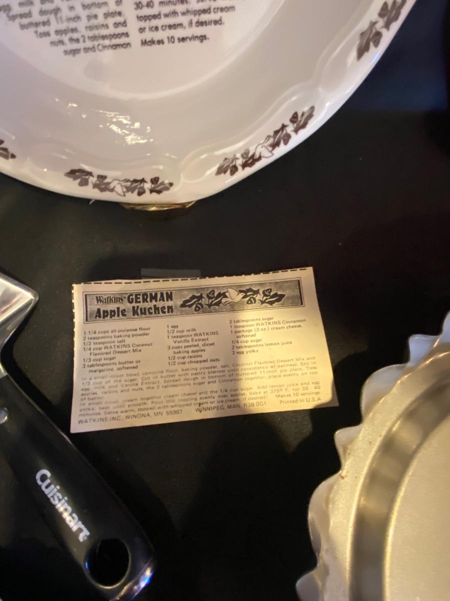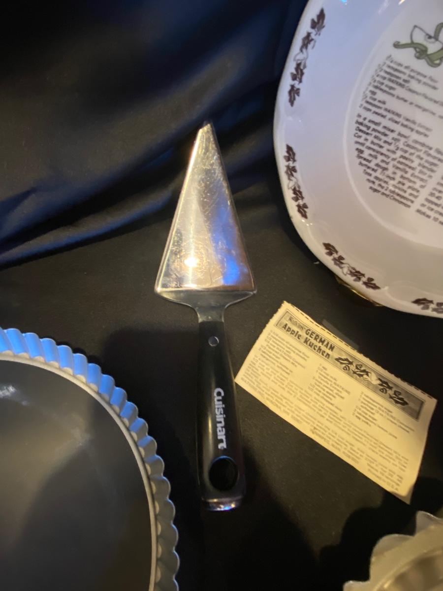 ALL THE NECESSARY ITEMS EXCEPT THE INGREDIENTS TO MAKE A GERMAN APPLE PIE
