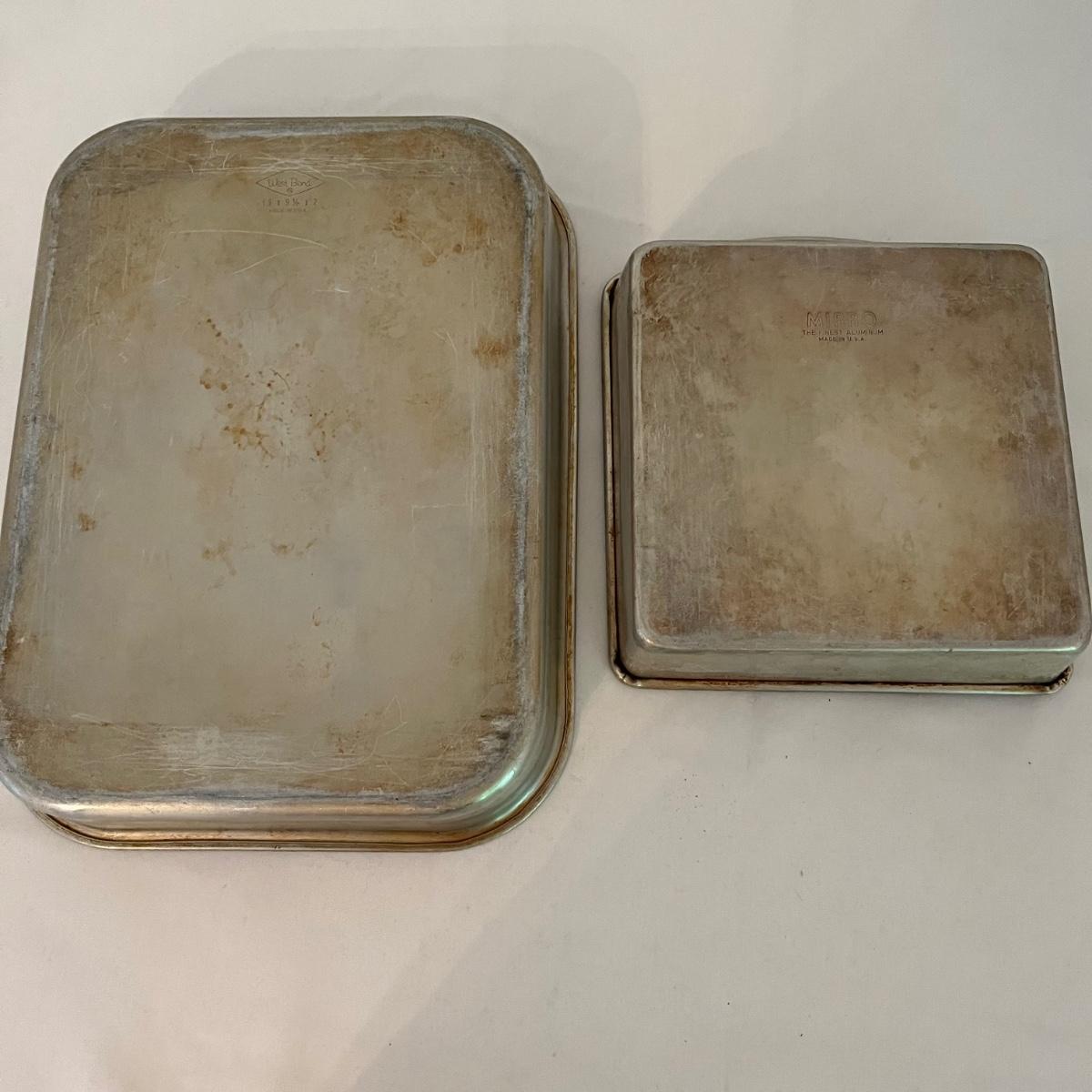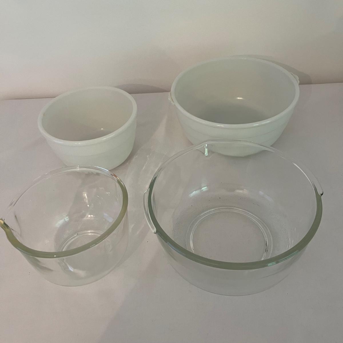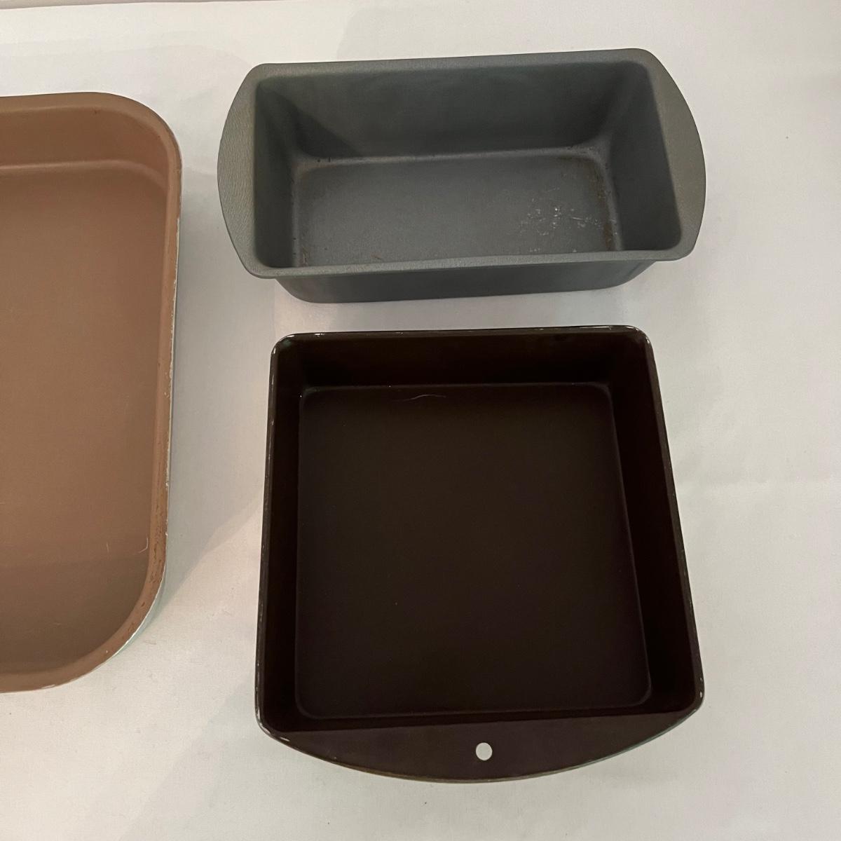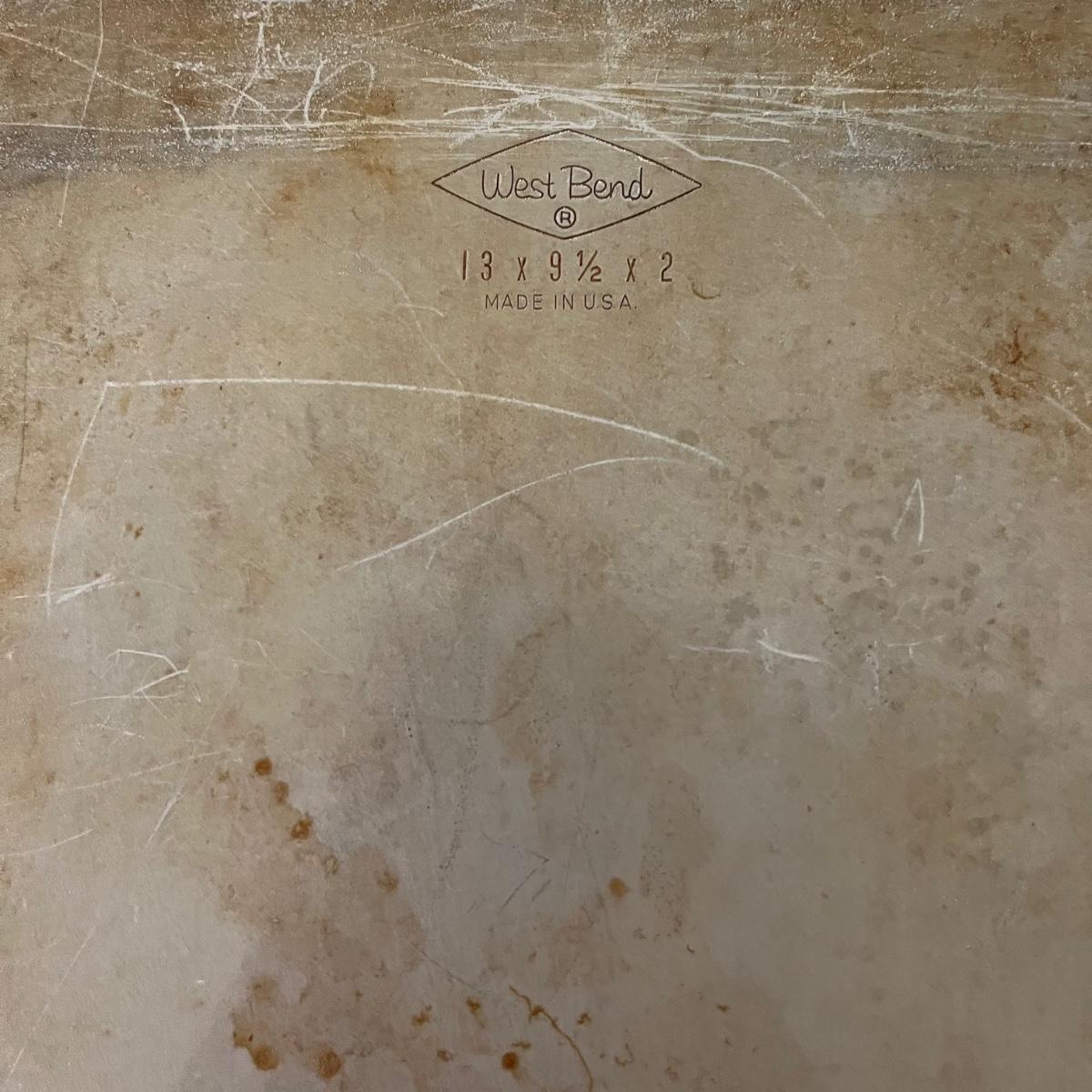 This lot includes baking pans, glass mixing bowls, an electric mixer, cooling racks, rolling pins, a baking thermometer, measuring spoons, and more. Some of the pans have scratches and wear on them (see photos). The mixer did not power on when plugged in. The largest pan measures about 14.5”D x 1.5”H and the mixer measures about 3.5” x 8” x 5”H. Shipping available.