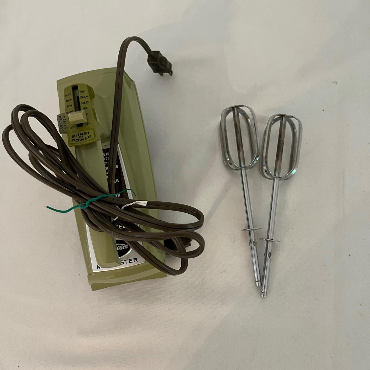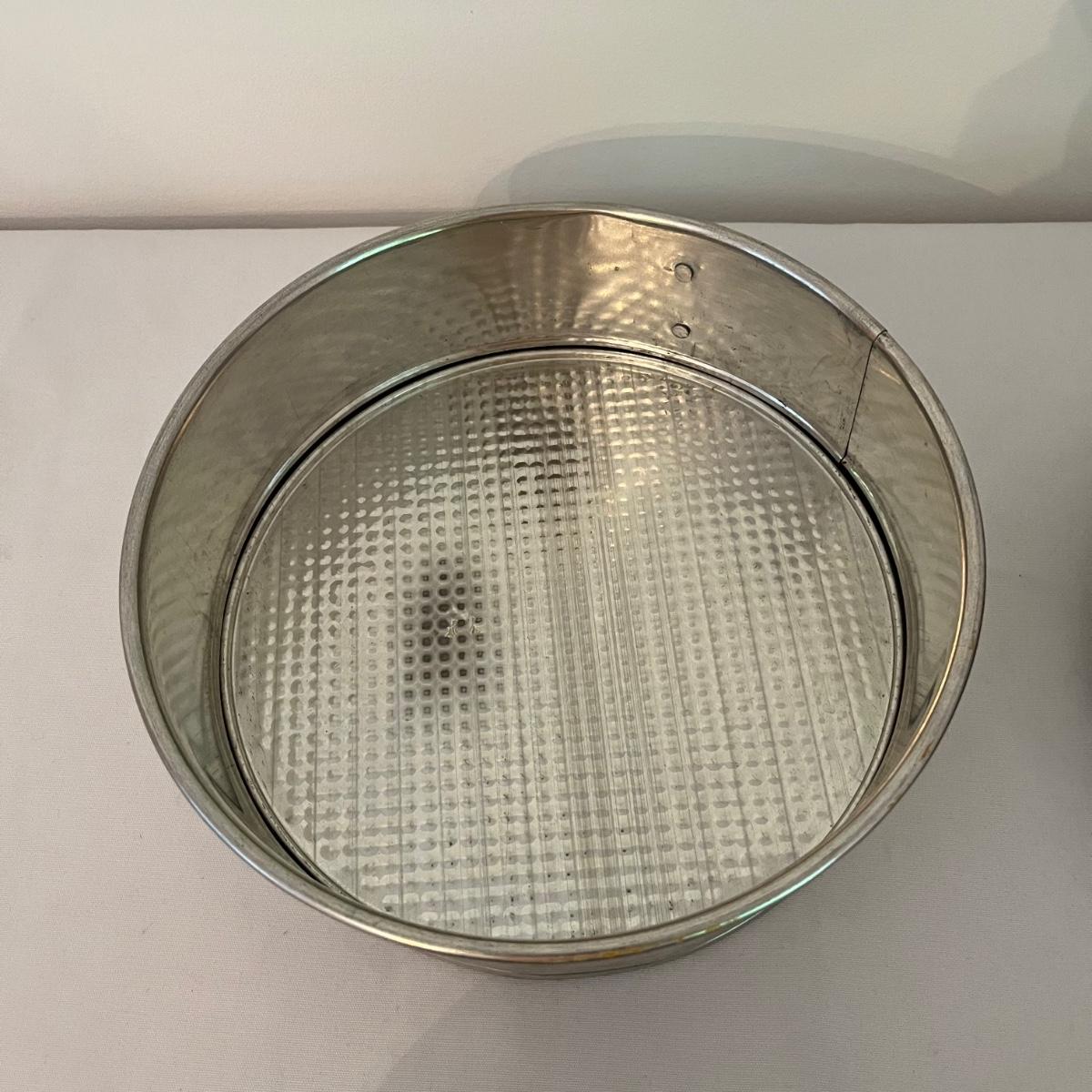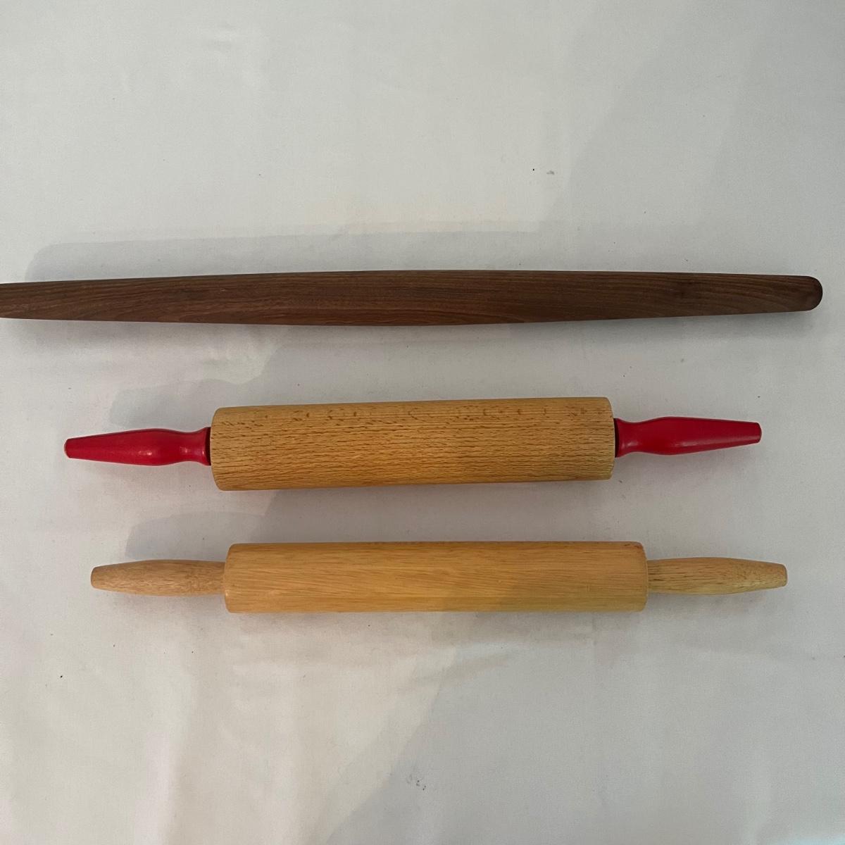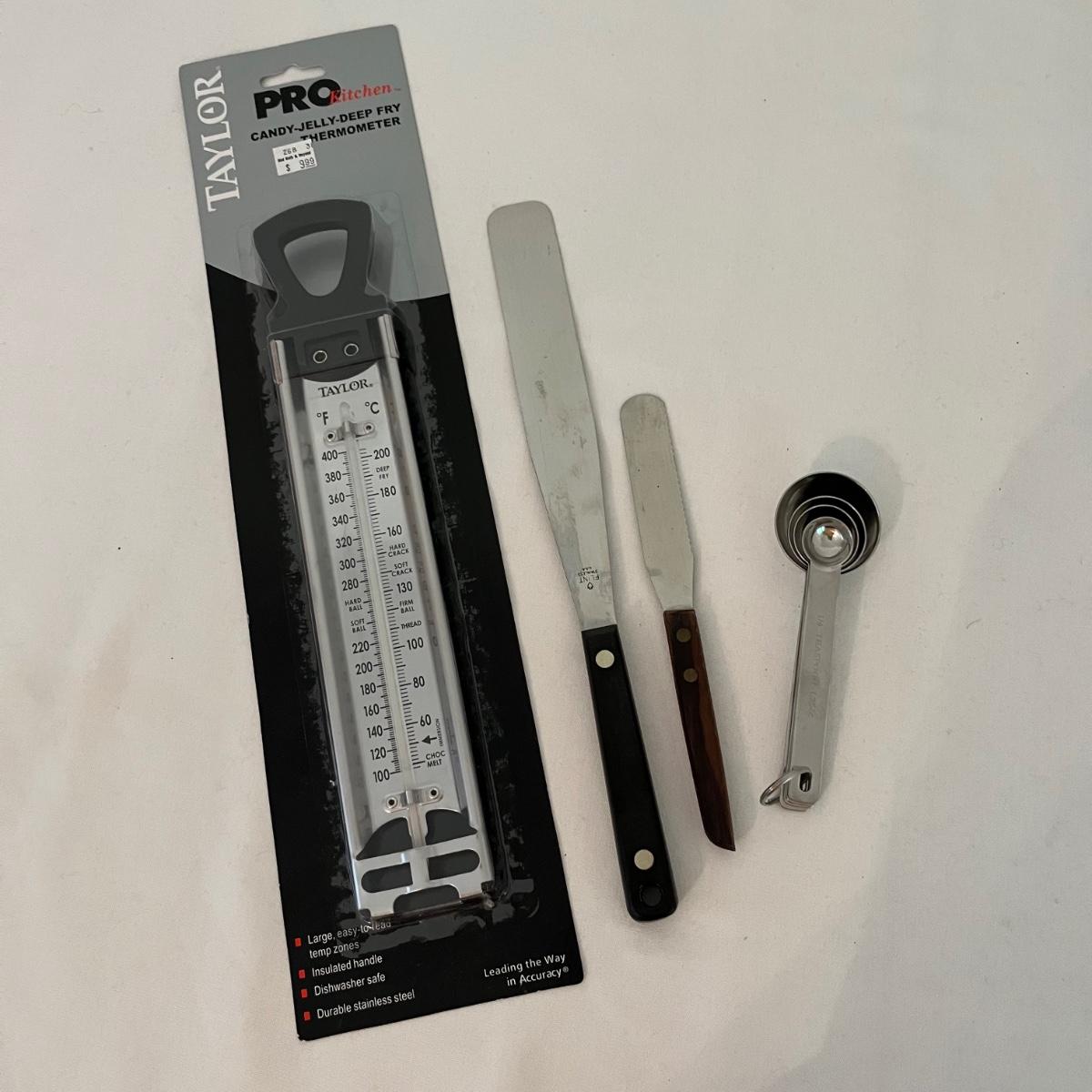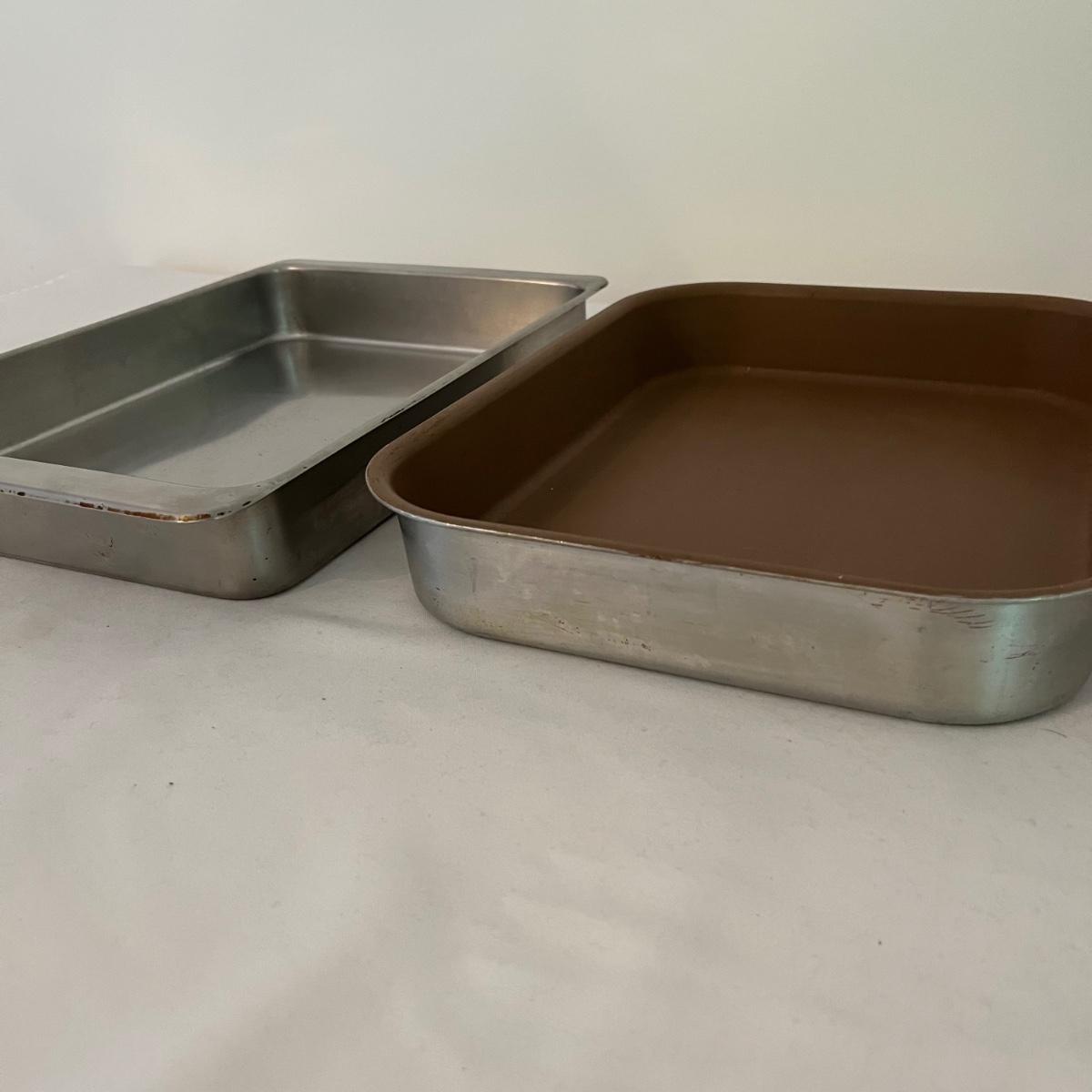 This lot includes baking pans, glass mixing bowls, an electric mixer, cooling racks, rolling pins, a baking thermometer, measuring spoons, and more. Some of the pans have scratches and wear on them (see photos). The mixer did not power on when plugged in. The largest pan measures about 14.5”D x 1.5”H and the mixer measures about 3.5” x 8” x 5”H. Shipping available.