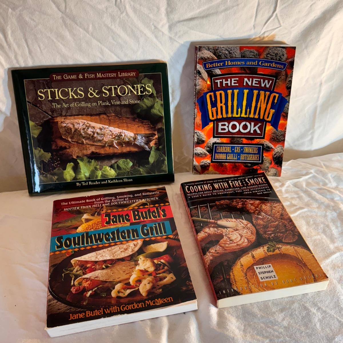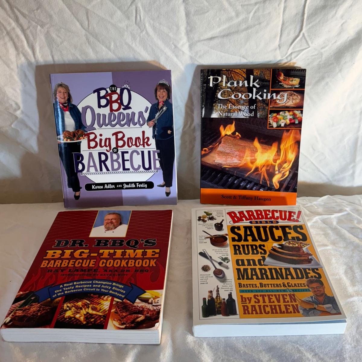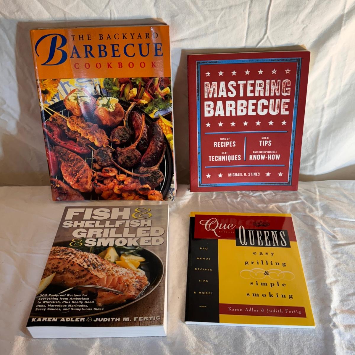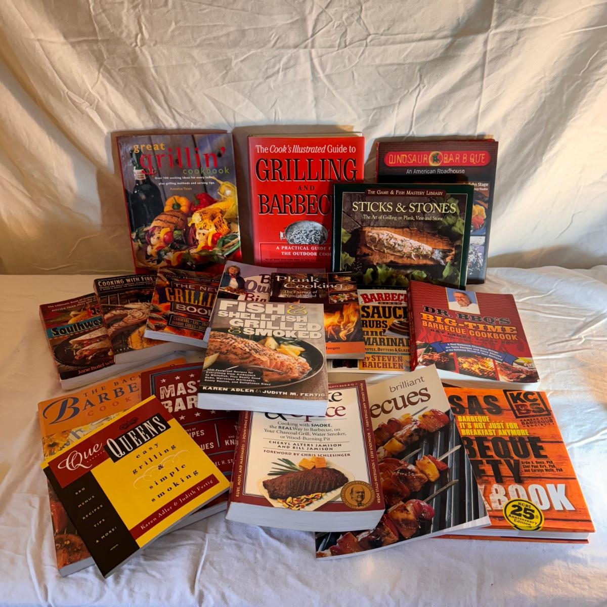 This lot includes eighteen books offering tips and tricks for barbecuing and grilling. A few recipe books are included. Shipping available.