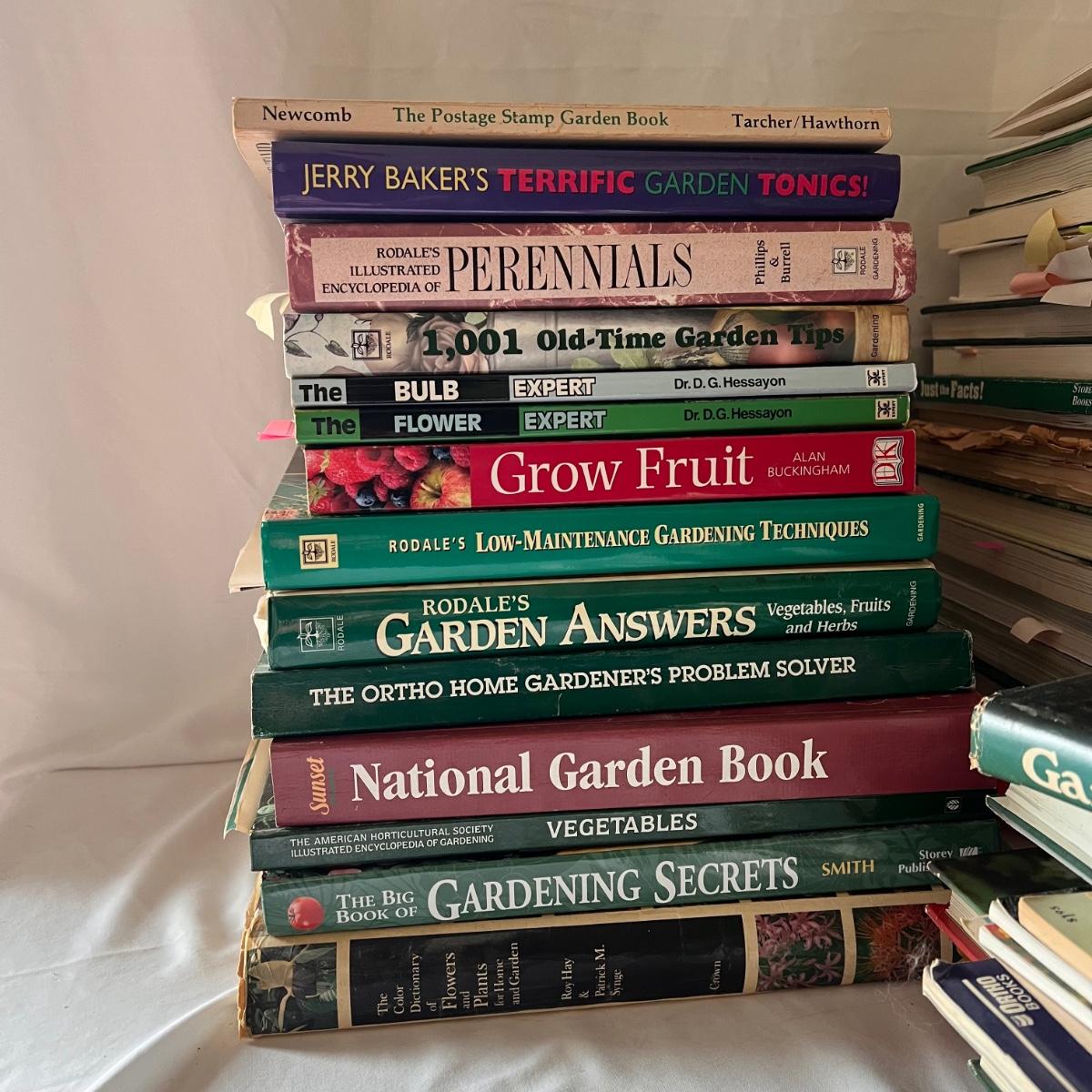 Large collection of gardening books that range from container gardening to wildflower gardening to vegetable gardening. Everything you need to know about gardening is found in this lot. Shipping available.