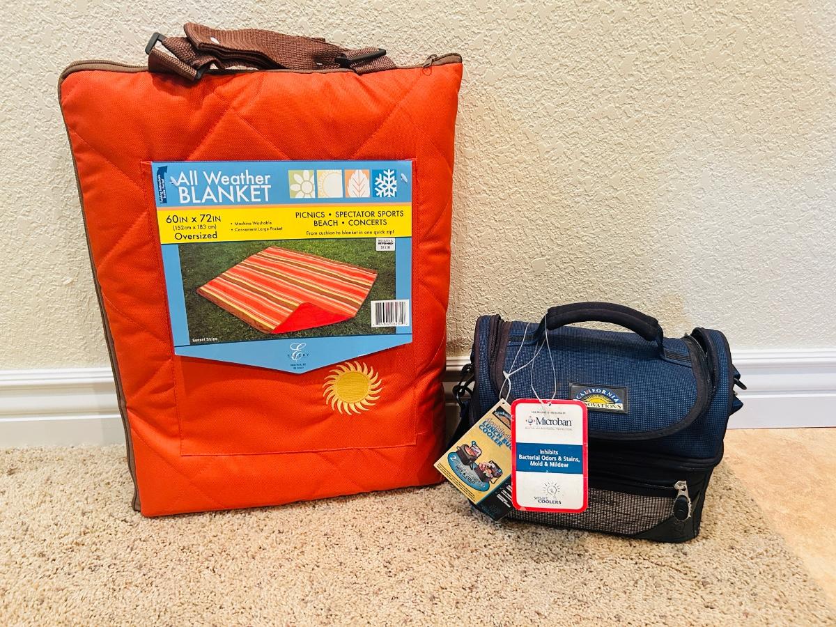ALL WEATHER BLANKET AND CALIFORNIA INNOVATIONS INSULATED LUNCH BOX