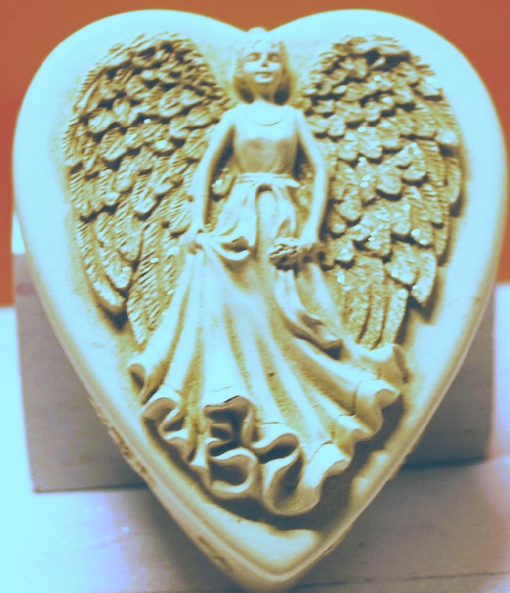 All White Angel Heart Shaped Jewelry Trinket Box 3½" x 3 x 1½"