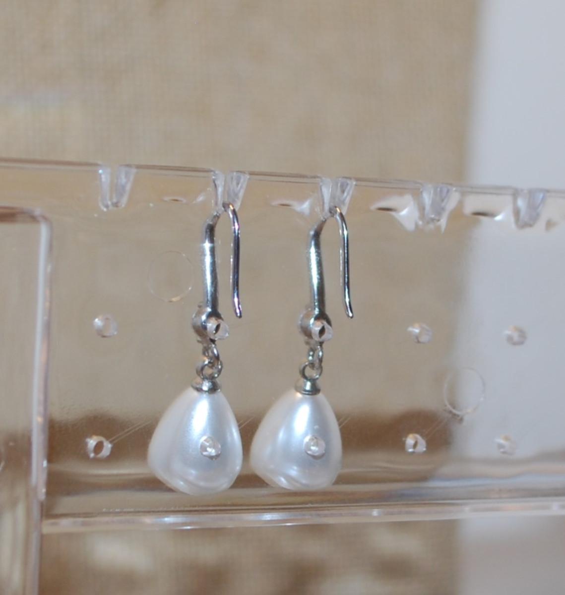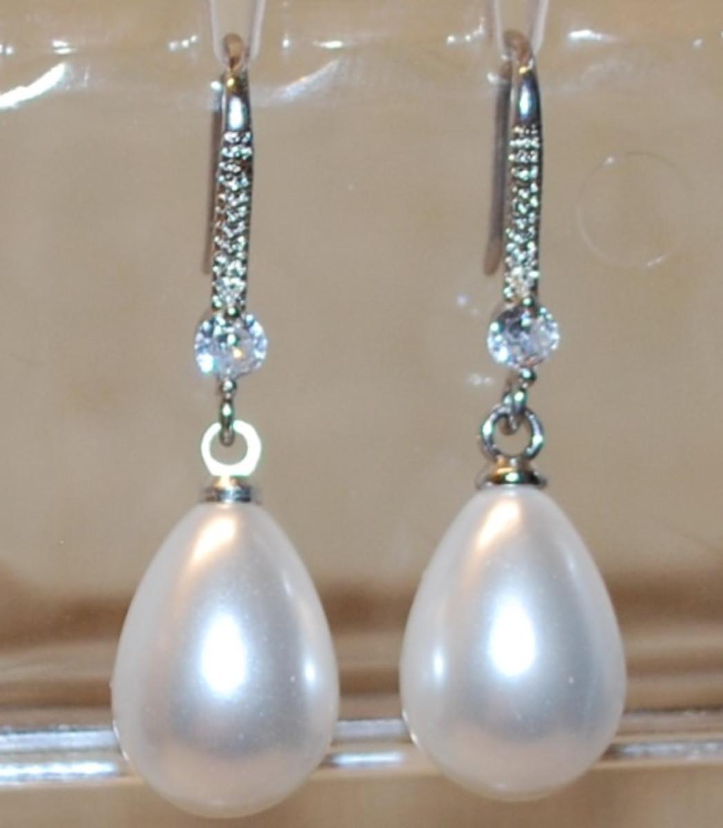 All White Faux Pear Shaped Pearl Hook Earring Set (1" x ½")
