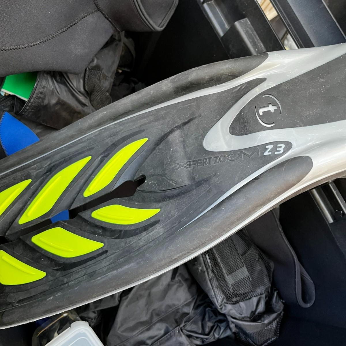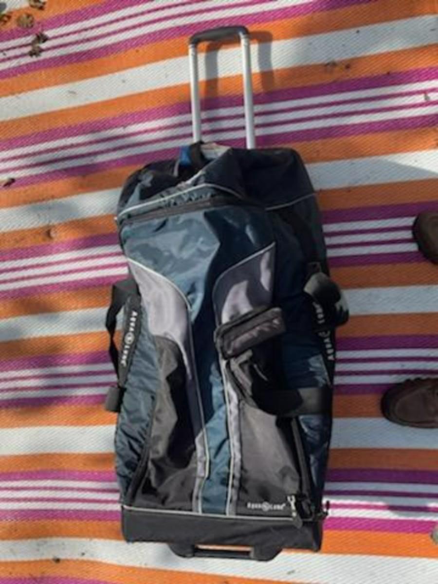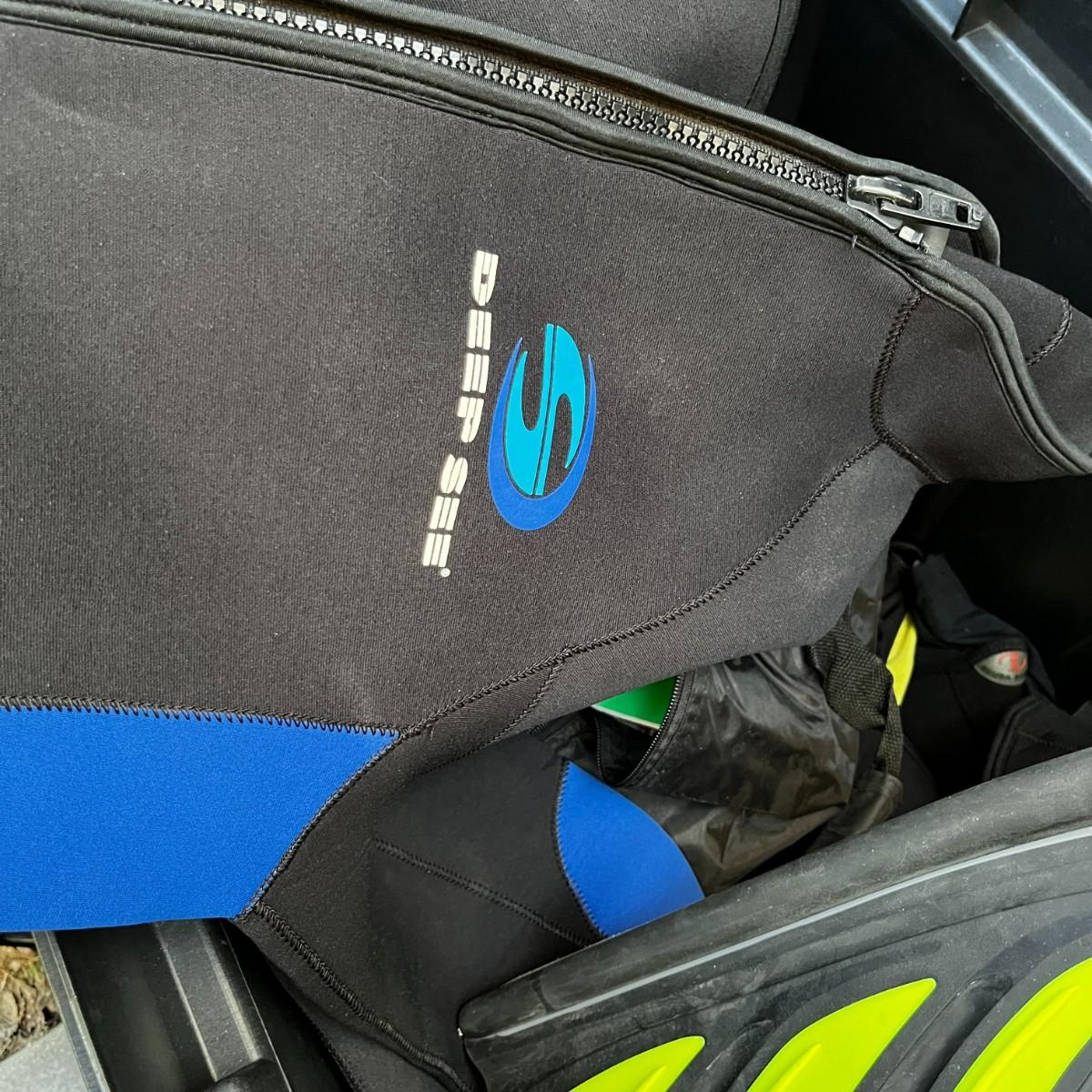 4 wet suits, 3 masks, aqua lung, carrying cases, fins, weights, snorkel, wet shoes (sz 11) instructions and more.