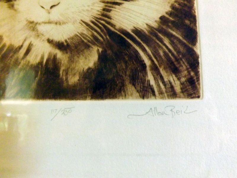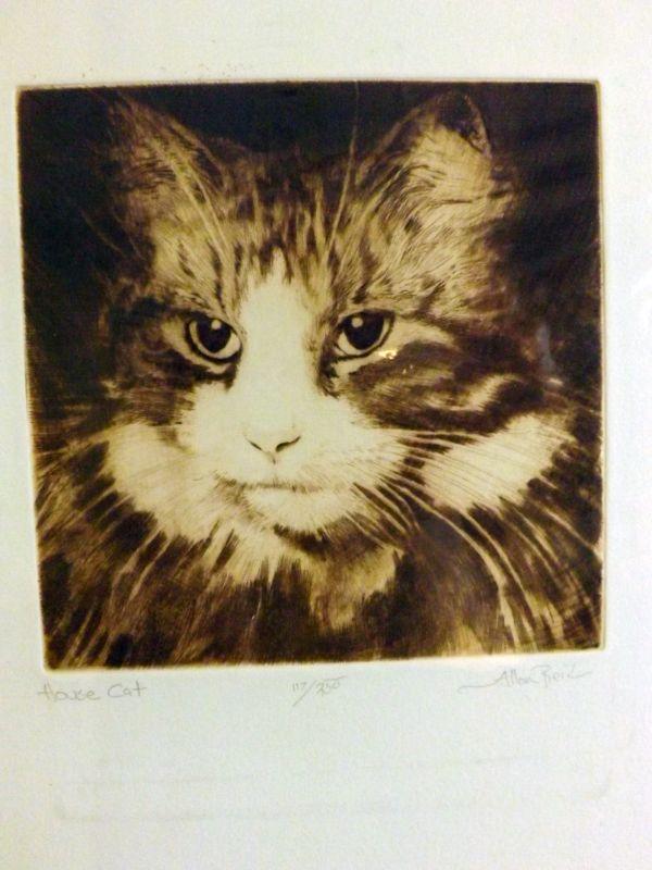 ETCHING "House Cat" numbered Print- " Frame-" **Please read Terms and Conditions before placing a bid. Pick up is by appoitment the following week in Mantua, New Jersey. Shipping is available at buyer's expense. All sales are final. All sales are as is, where is. Please review all photos. Any props included in photos are not included in listing. All measurements are approximate.