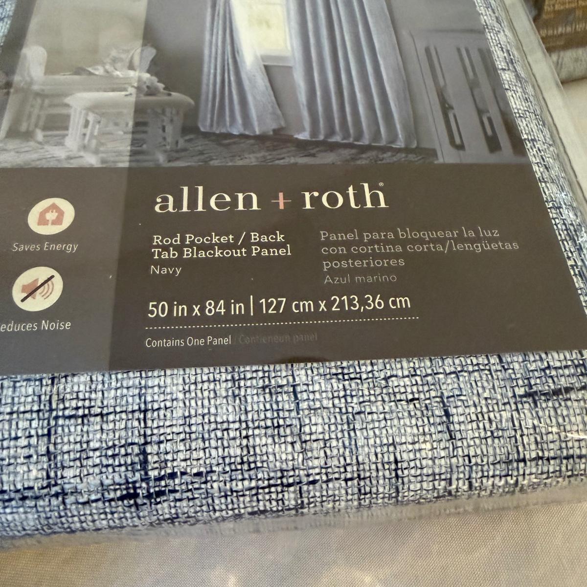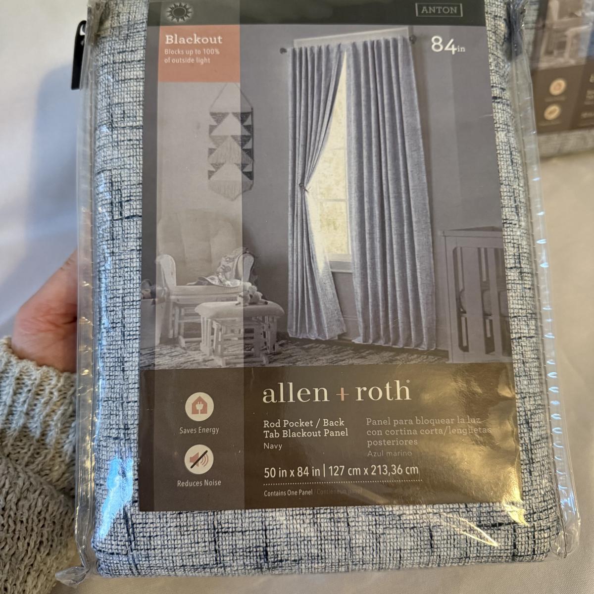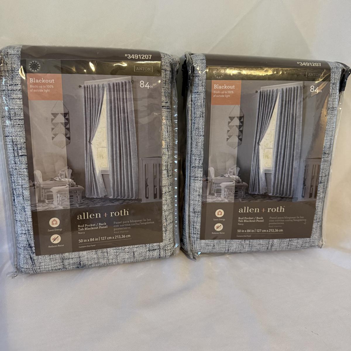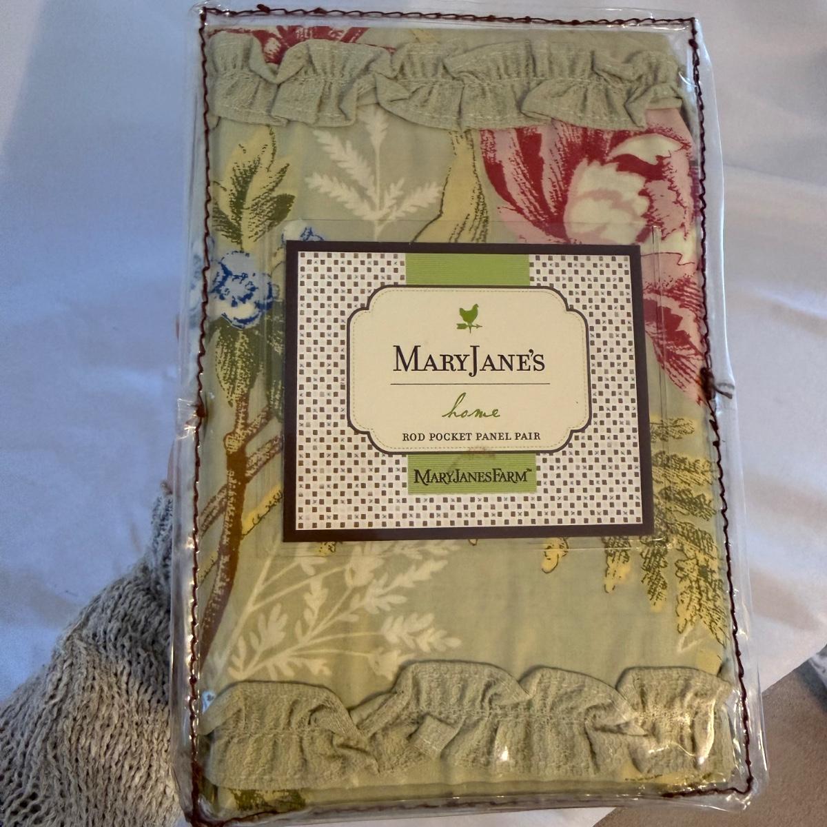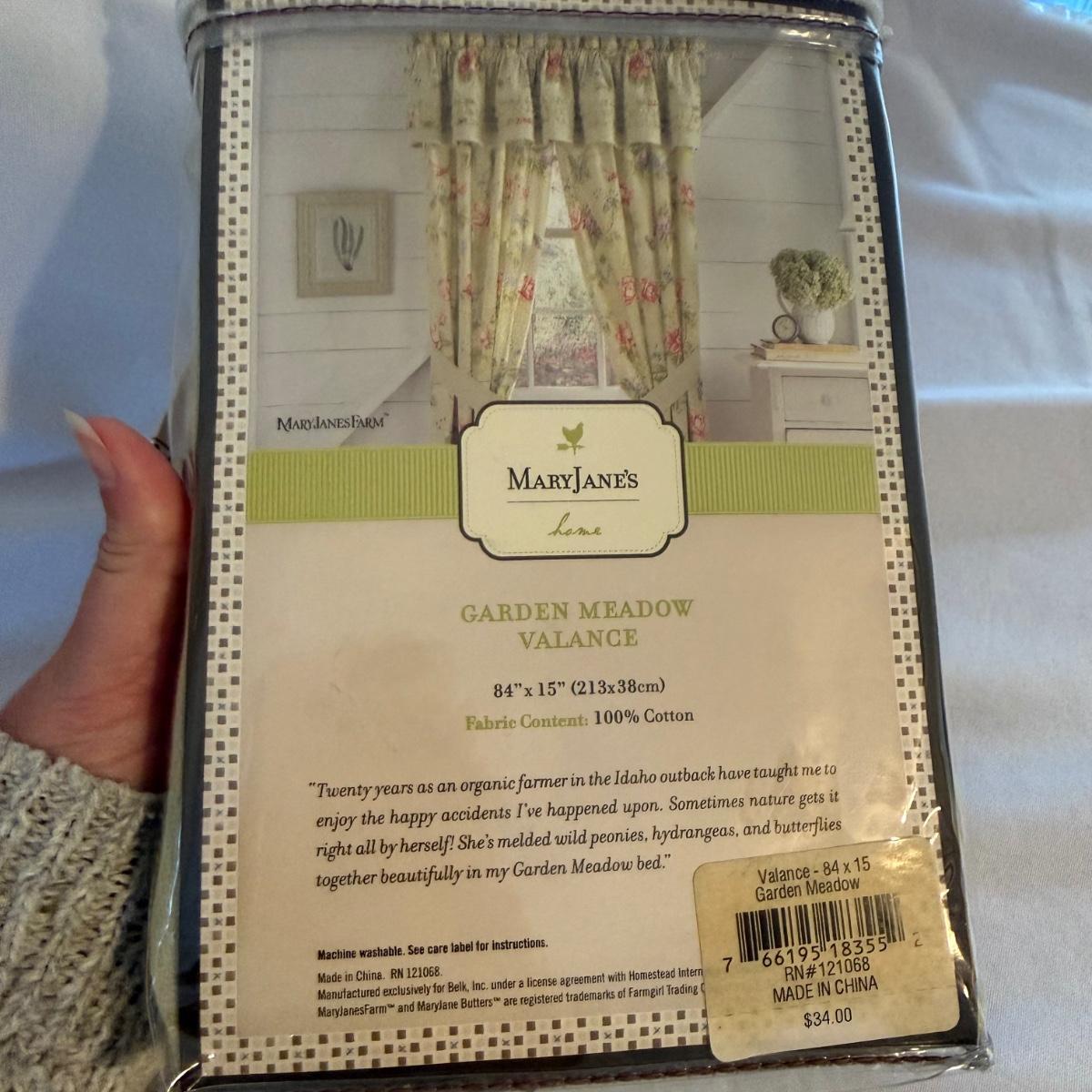 This lot contains ten NIB items. The first are two Allen & Roth blackout, rod pocket grey and black curtains. Both of these are NIB and measure 50” x 84”, are made of polyester, and each pouch contains one panel. Next we have a MaryJane’s “garden meadow” valance that is 100% cotton and measures 84” x 15”. Also included is a MaryJane’s “garden meadow” rod pocket panel pair which has two 42” x 84” panels with tie-backs also made with 100% cotton. Next we have three heavy duty adjustable curtain rods that measure 27”-48” as well as a single heavy duty adjustable curtain rod that measures 18”-30”. Lastly we have two adjustable sash cafe rods that measure 20”- 48”. Shipping available.