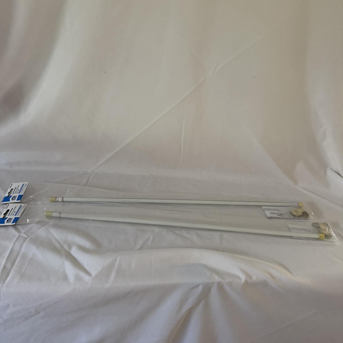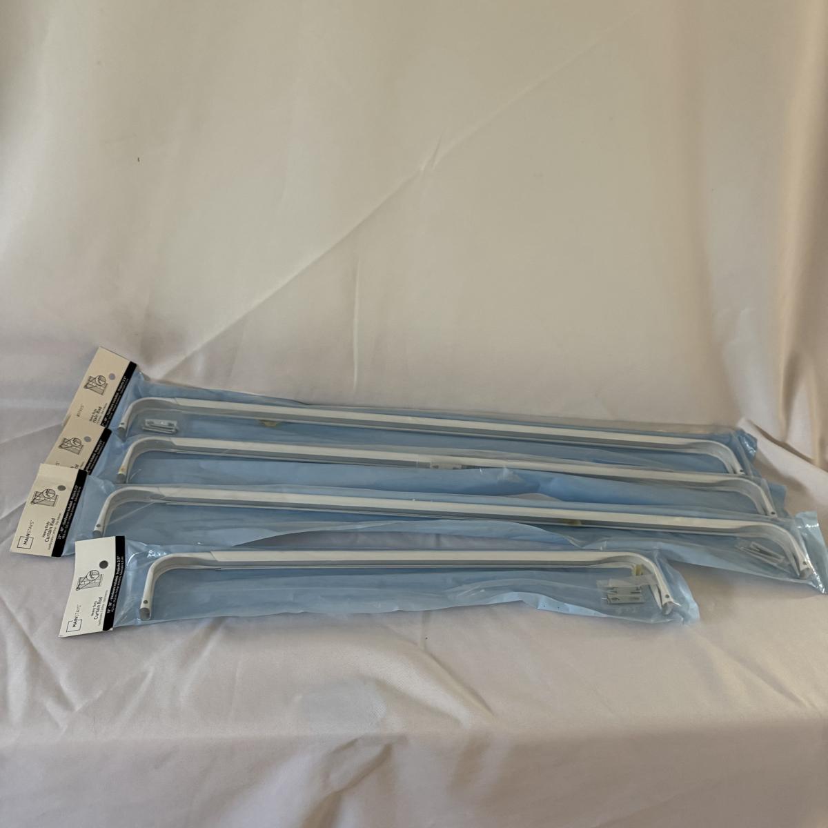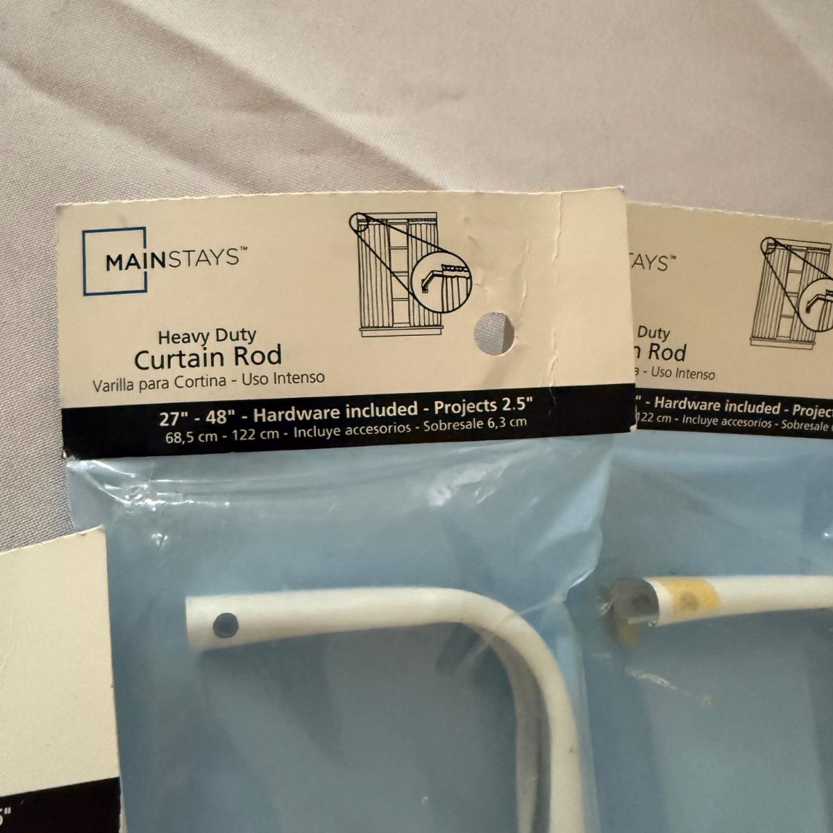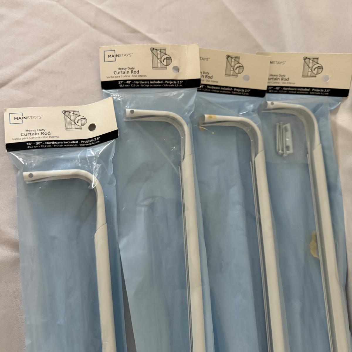This lot contains ten NIB items. The first are two Allen & Roth blackout, rod pocket grey and black curtains. Both of these are NIB and measure 50” x 84”, are made of polyester, and each pouch contains one panel. Next we have a MaryJane’s “garden meadow” valance that is 100% cotton and measures 84” x 15”. Also included is a MaryJane’s “garden meadow” rod pocket panel pair which has two 42” x 84” panels with tie-backs also made with 100% cotton. Next we have three heavy duty adjustable curtain rods that measure 27”-48” as well as a single heavy duty adjustable curtain rod that measures 18”-30”. Lastly we have two adjustable sash cafe rods that measure 20”- 48”. Shipping available.