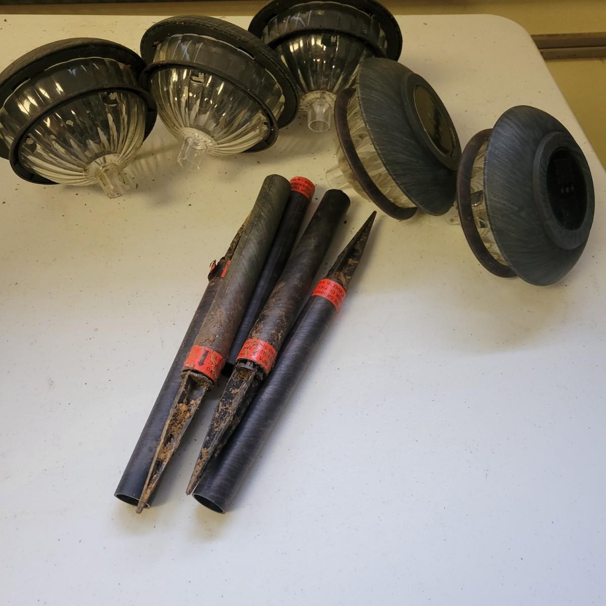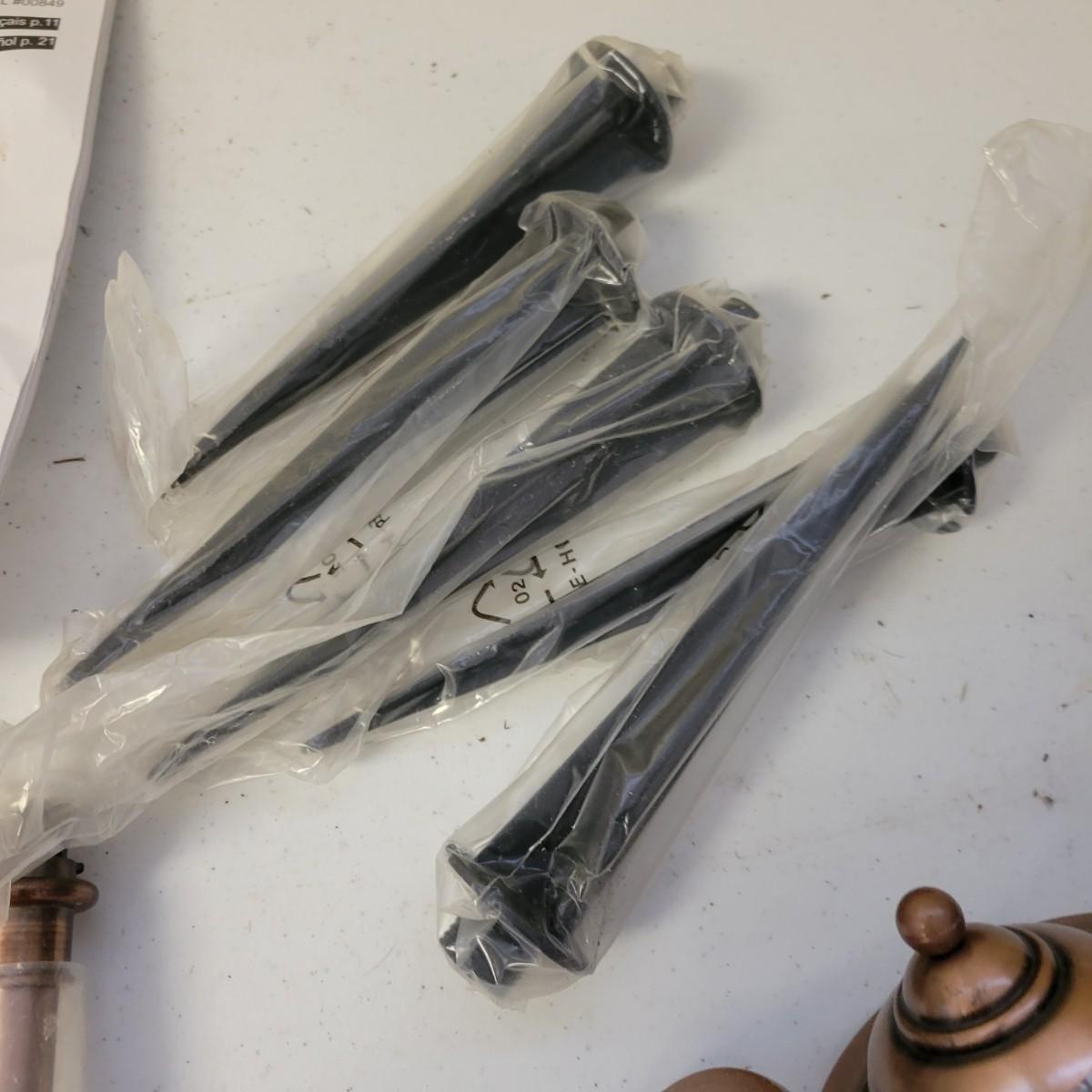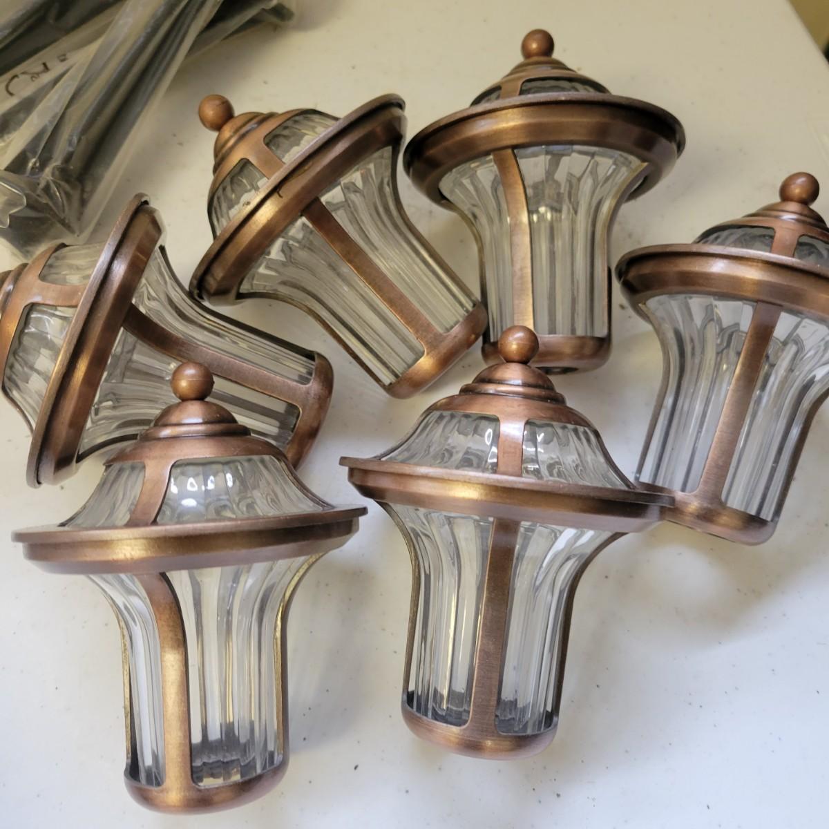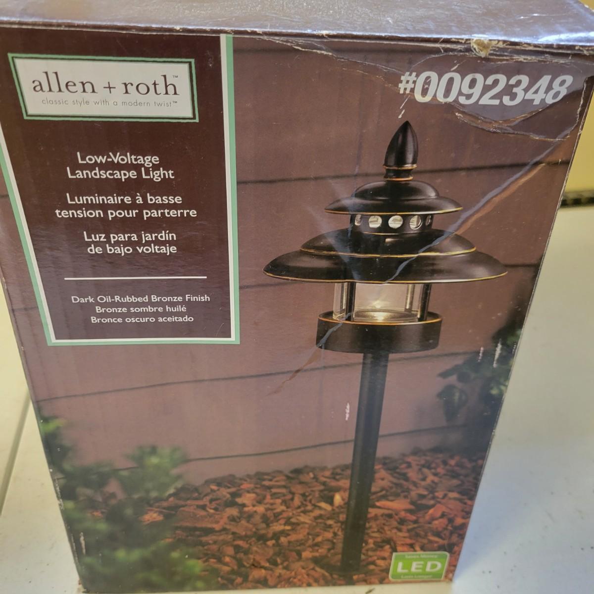 An assortment of luminaries in fair to good condition. None of the solar or powered lights were tested. Many of these items were used and cannot guarantee all items listed on the boxes are present. This lot includes an assortment of Roth and Allen, and Portfolio path lights. Also included are two candle lanterns made of metal, one hanging lantern made of metal and two battery powered votive lanterns. The two candle lanterns measure approximately 6' x 6" x 11". Shipping available. Shipping can be costly. We suggest calling our local UPS with dimensions and getting an estimate before bidding: (828) 252-6930