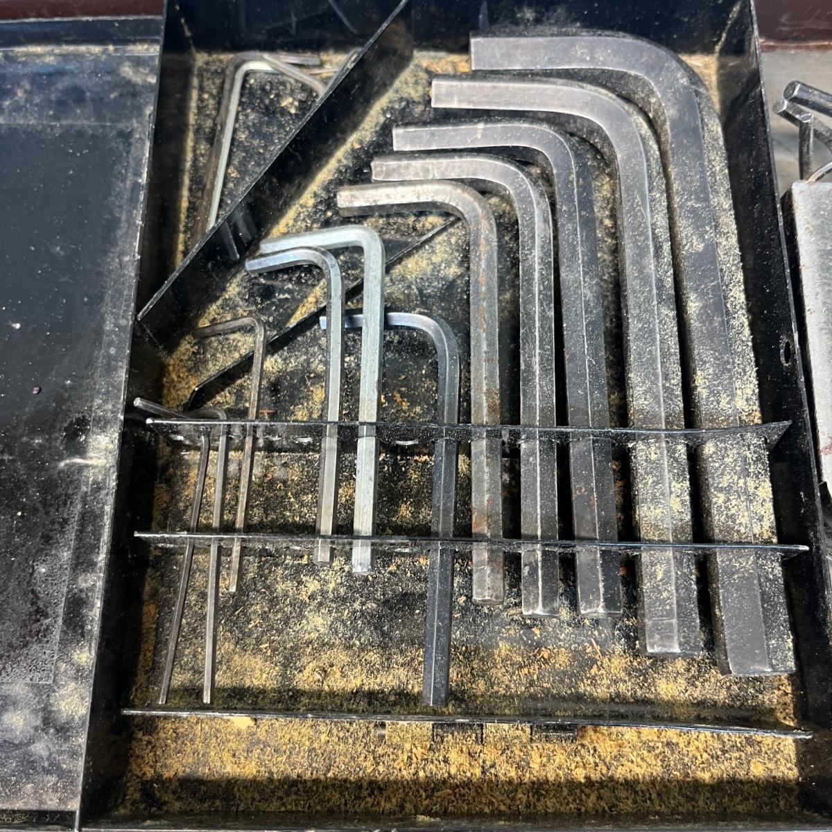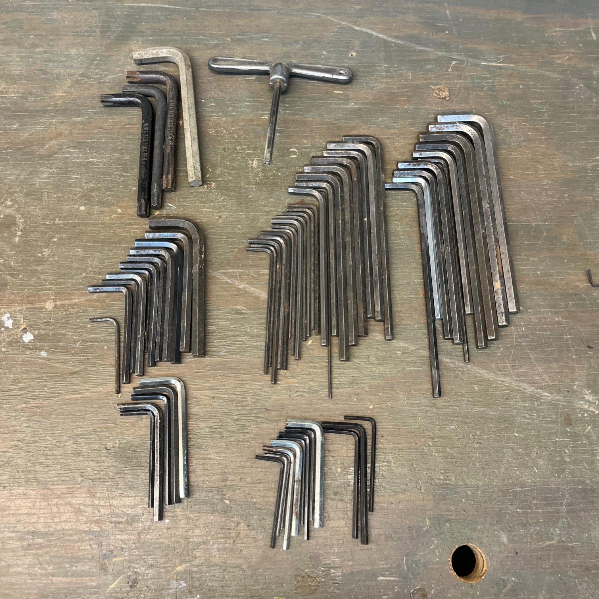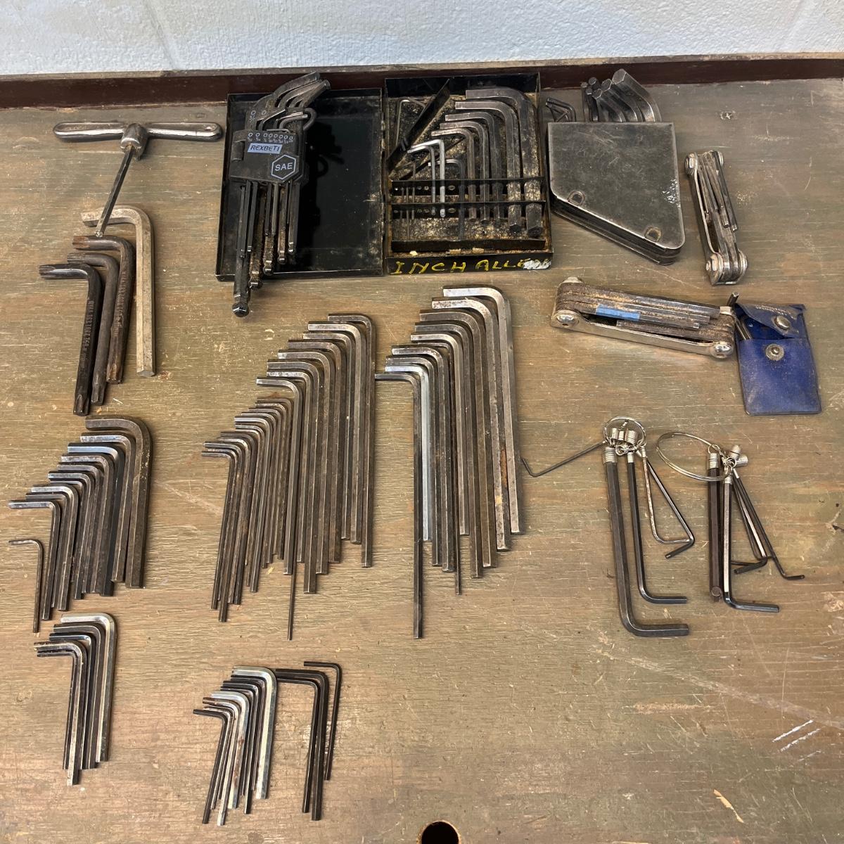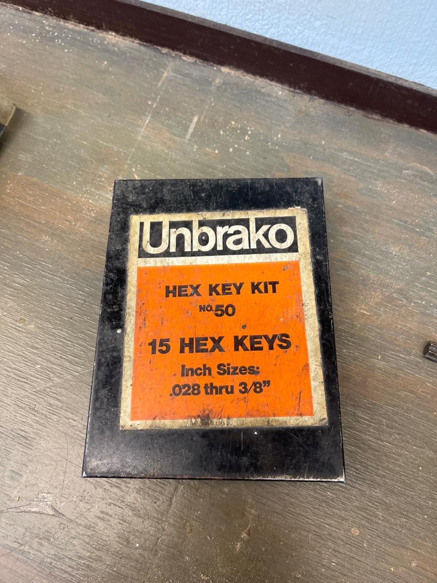 Lot includes a large collection of Allen wrenches in a variety of sizes and lengths. Unbrako box measures 4” x 1” x 5.5”H.
