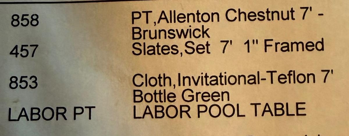 Beautiful Brunswick 7’ 1” Framed Pool Table sells for over $4000 new at Kallod Inc. Same Place this was bought years earlier. Still in perfect condition. A steal at the starting price listed.