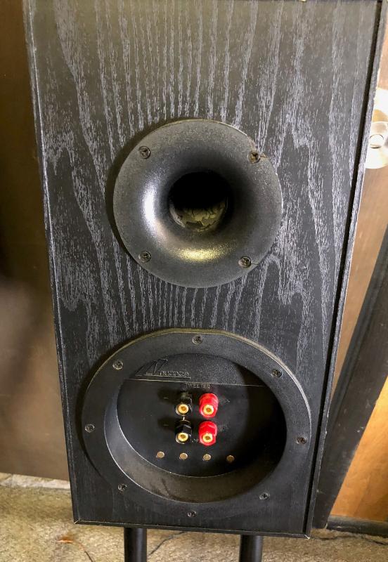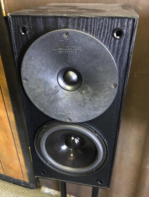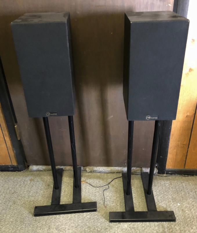 On stands here are a pair of working Alliance audio speakers...42" high...Speaker measures 8" 10" by 15"...