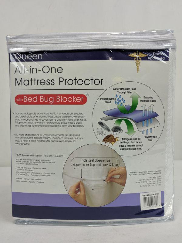 All-In-One Mattress Protector, WIth Bed Bug Blocker, Queen - New