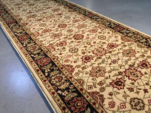 2 Feet 7 Inches X 11 Feet detailed Allover Turkish Design Brand Name Runner, in Tan, Black, Red and Multi Accent Colors. Made of Durable and easy to care. Polypropylene Pile Power Loomed in Turkey.