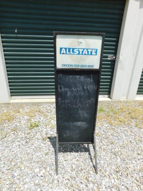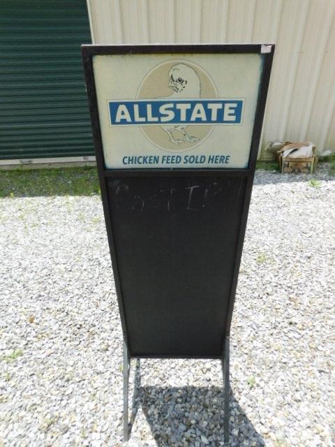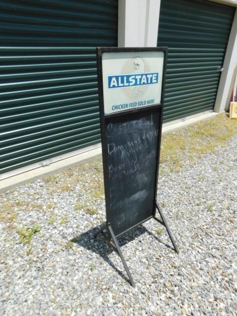 Allstate Chicken Feed Double Sided Store Display Stand with Chalk Board 61"x19"