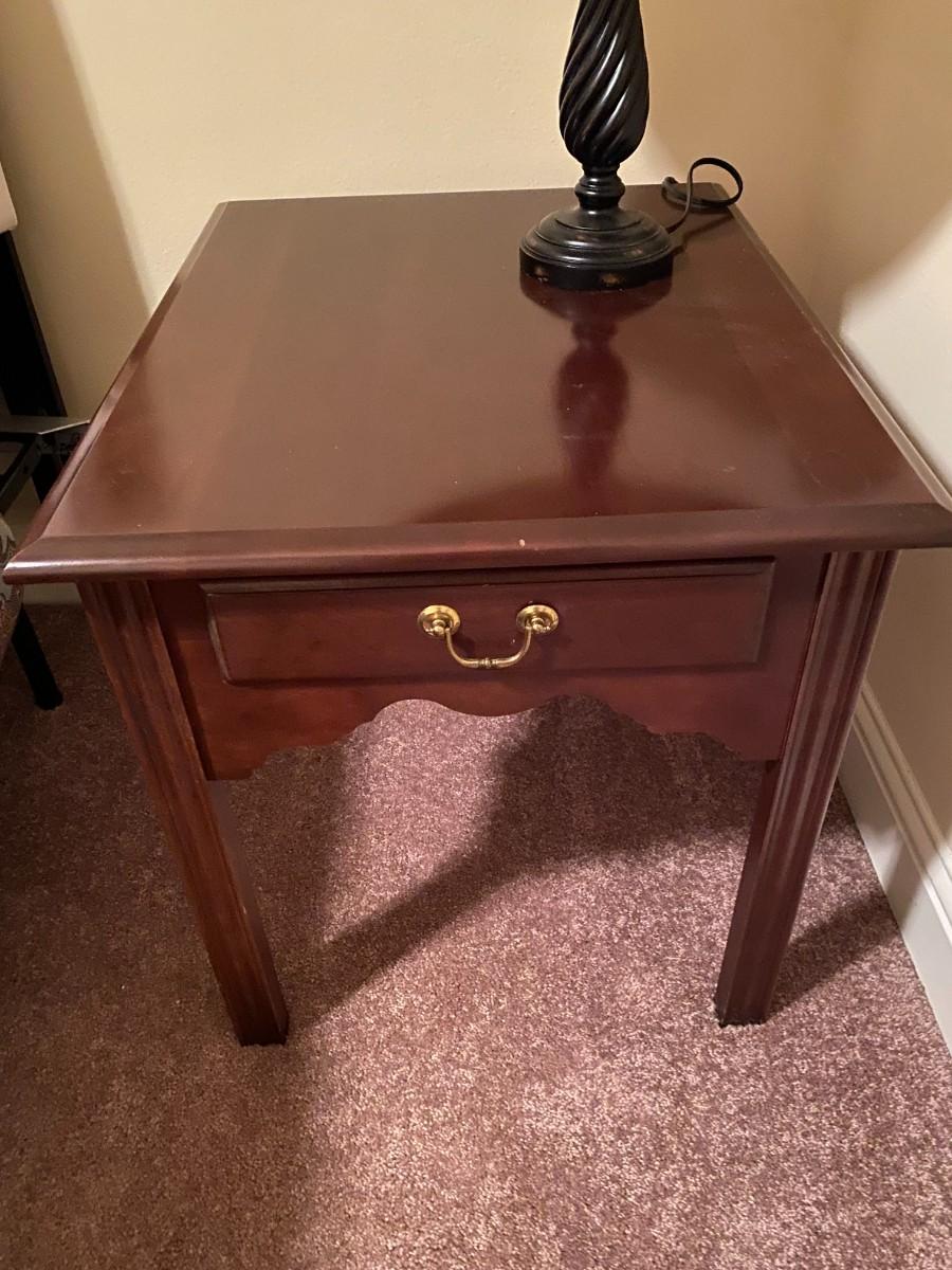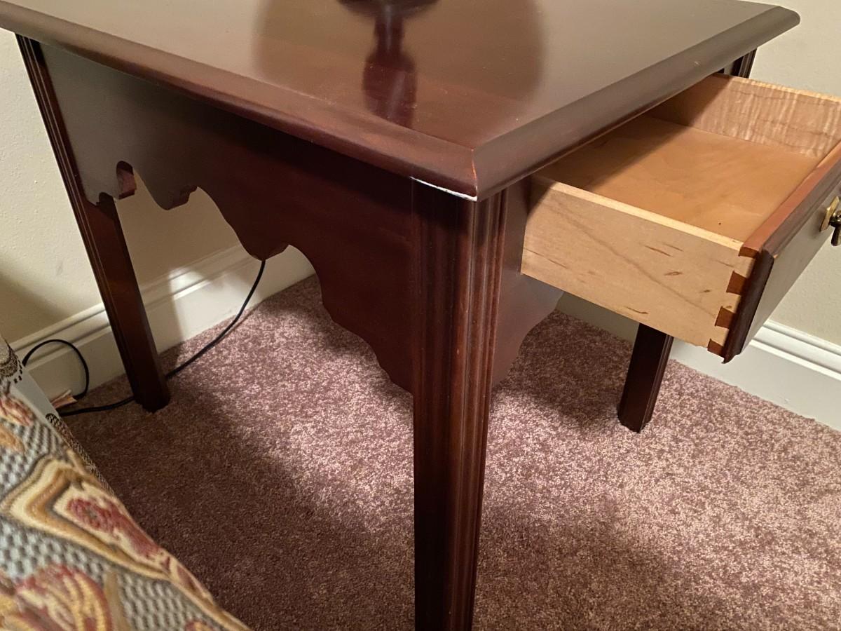 All-wood night stand with one dovetailed drawer. Very good condition. Approx. 22" W x 27" D x 23-1/2" H