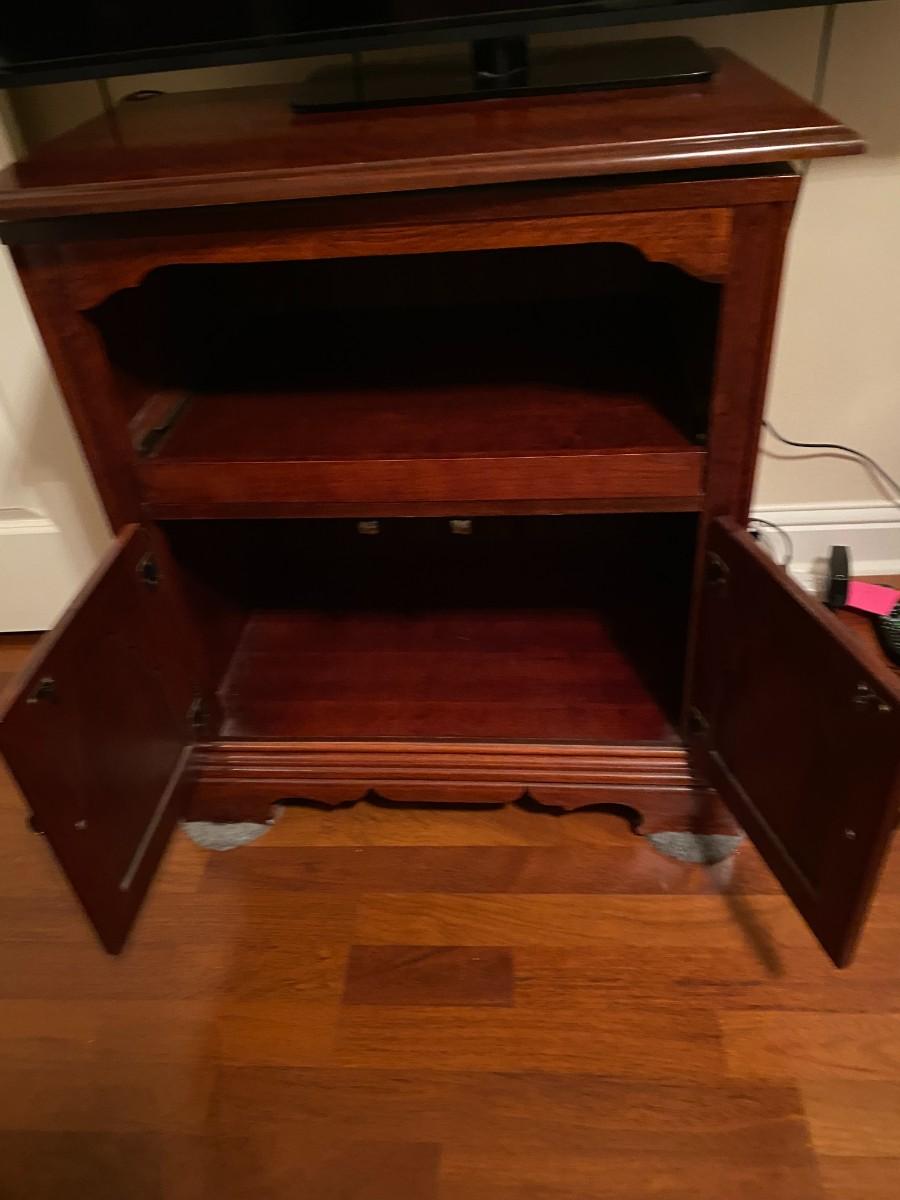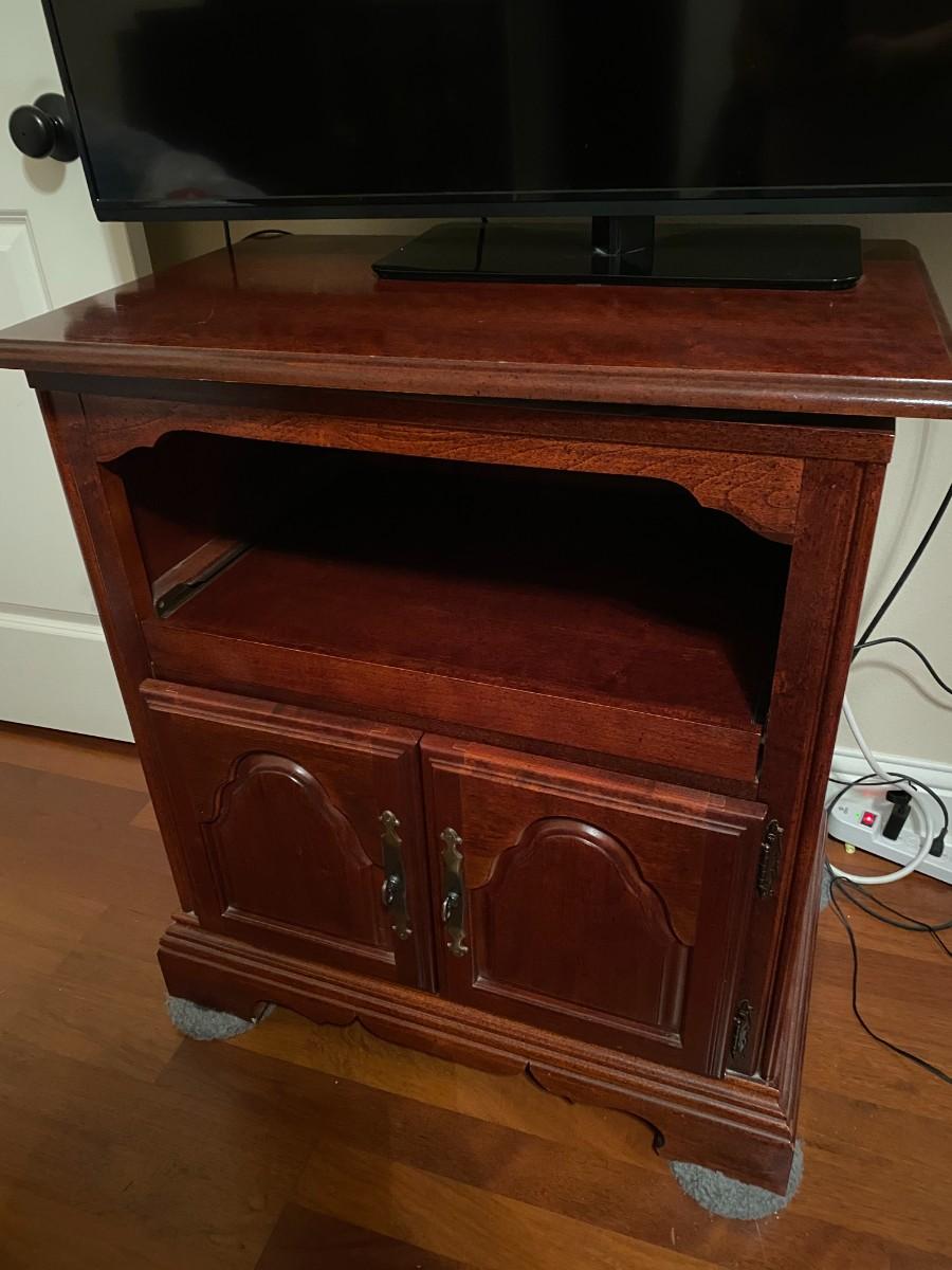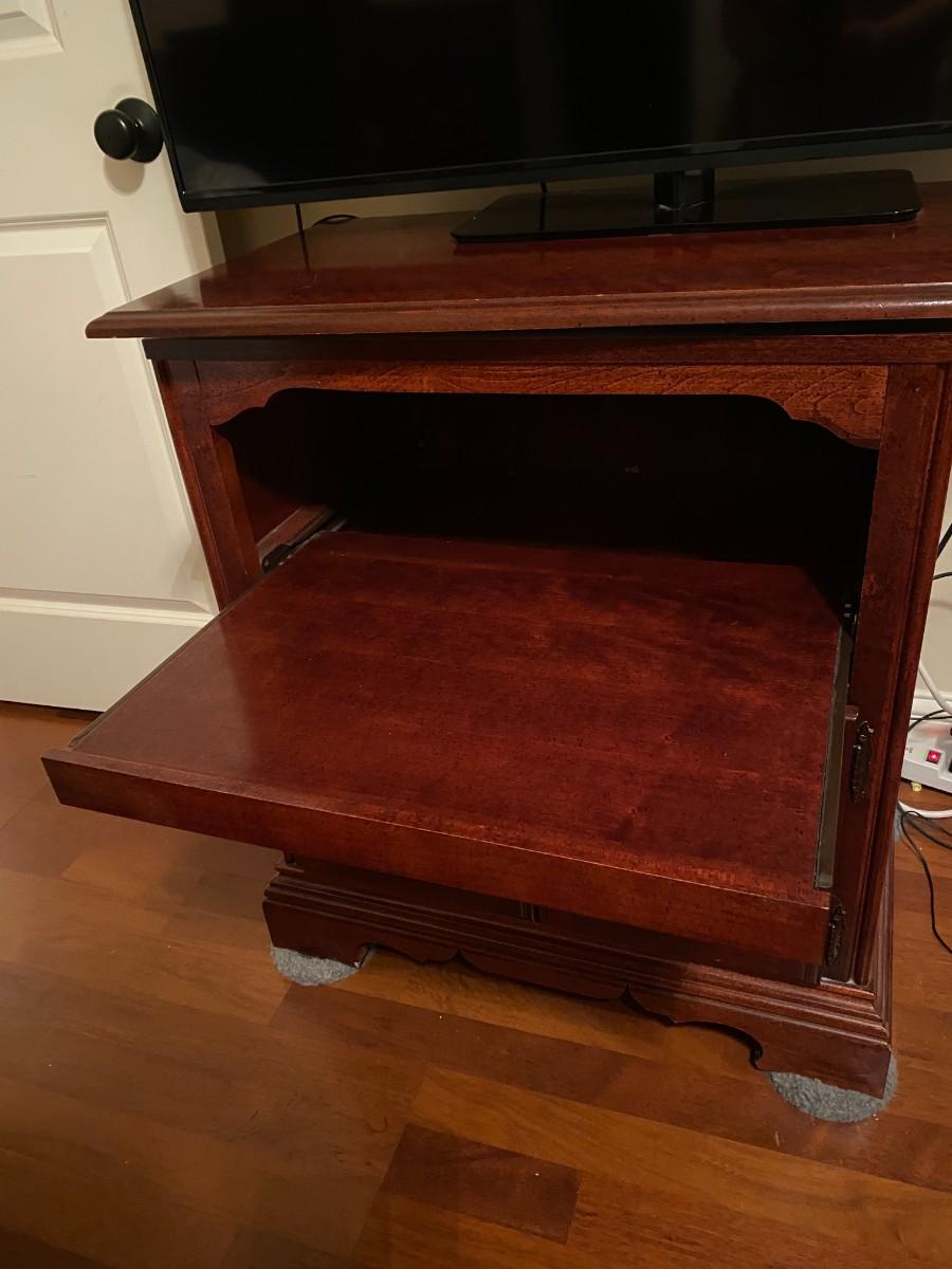 All-wood TV cabinet. Slide-out shelf and cabinet below. Excellent contition.