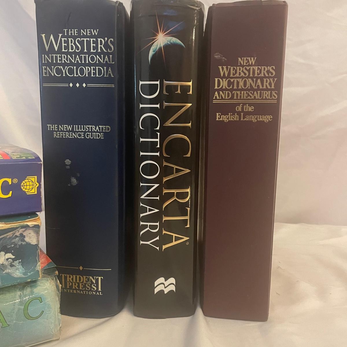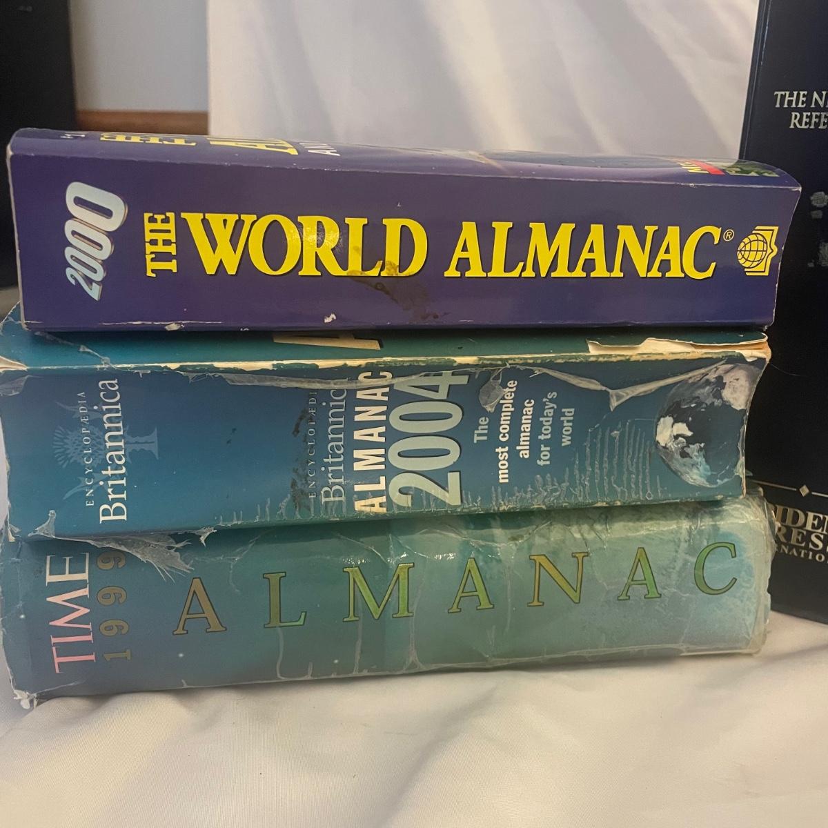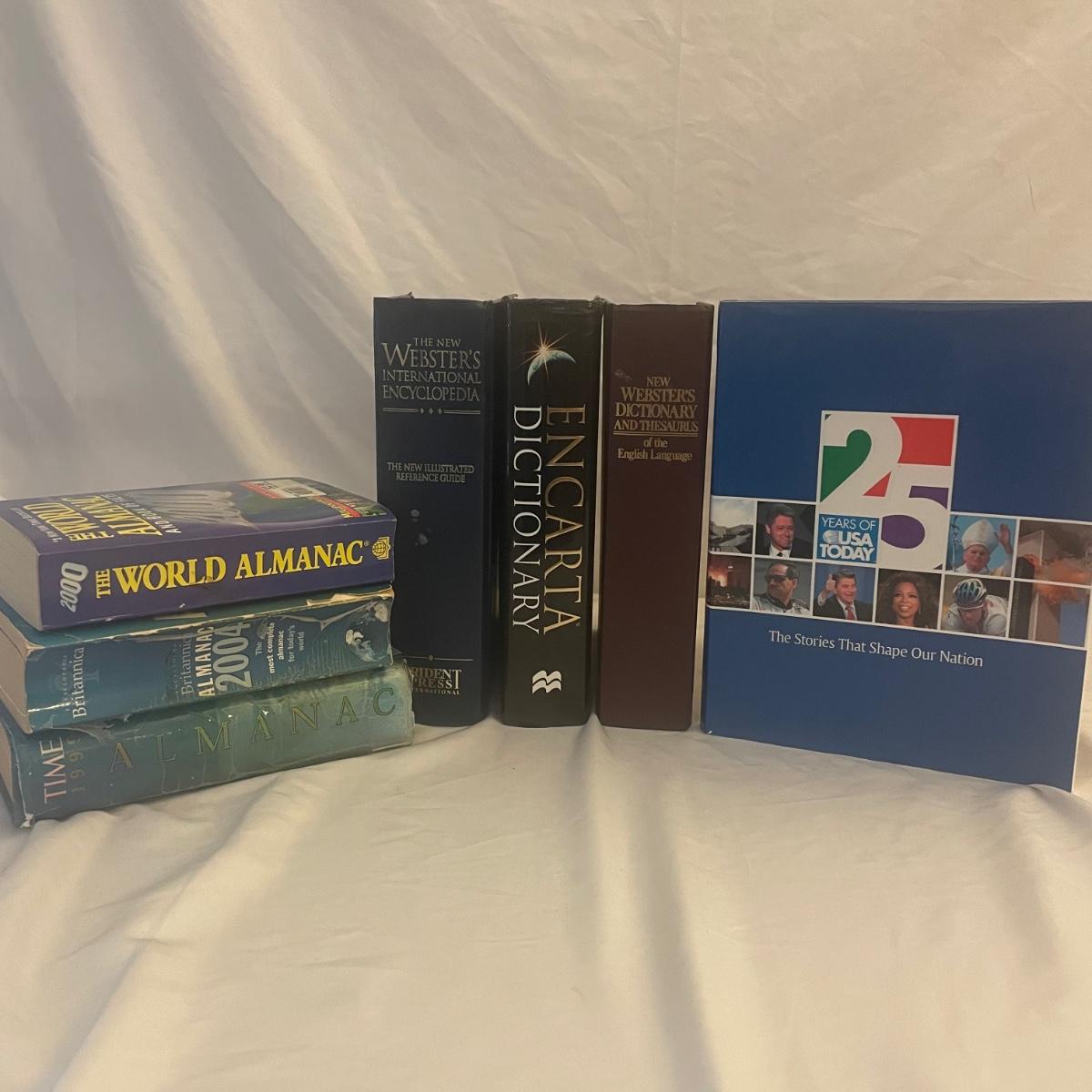 Five hardbacks and two paperbacks in this lot of dictionaries and almanac’s.