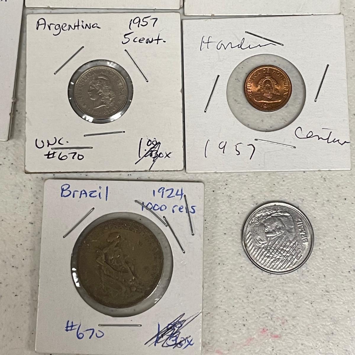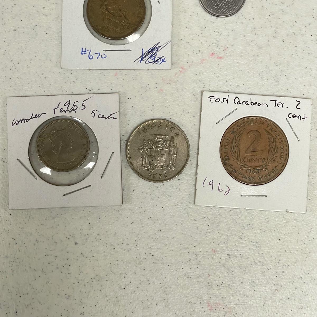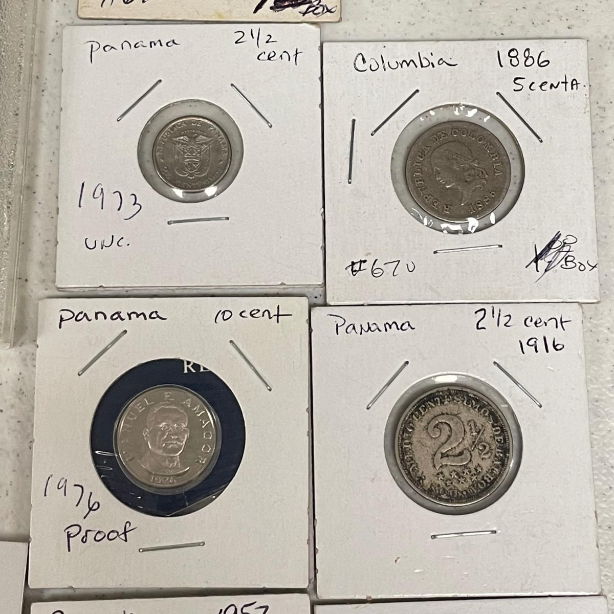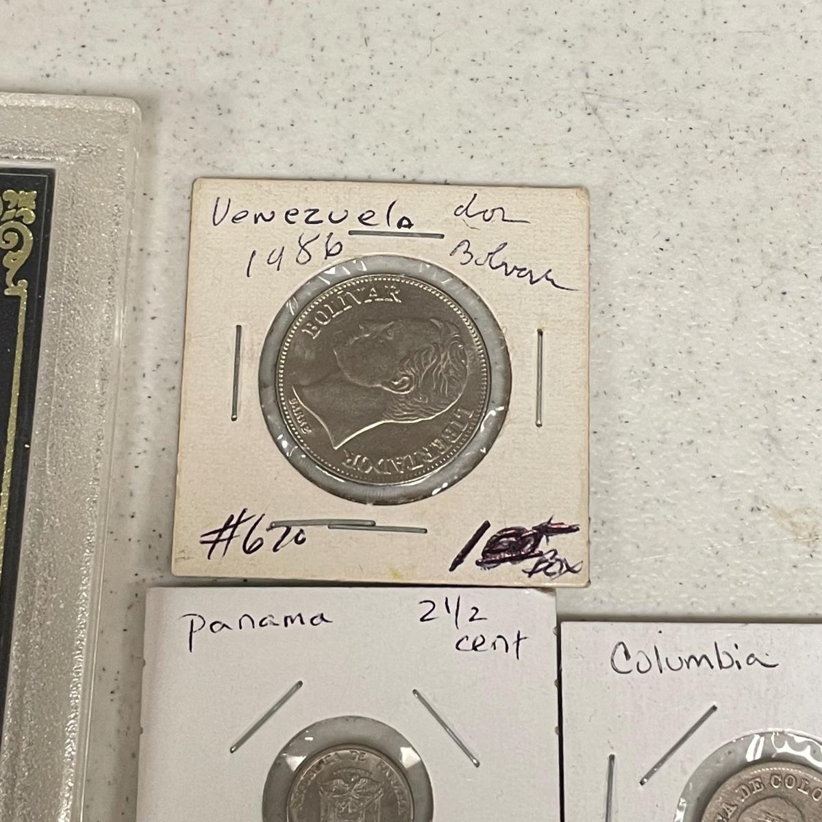 Large selection of North and South American coins plus Hawaii and Fiji. A capital plastic set of five Hawaiian dollar coins plus loose Honolulu and Kauai dollar coins. Sleeved coins include written out countries like Panama, Venezuela, Canada, Jamaica, Honduras, Argentina and more. Lot also features a miniature US Standing Quarter. All sales are final. No returns or refunds. Please bid accordingly. Shipping available.
