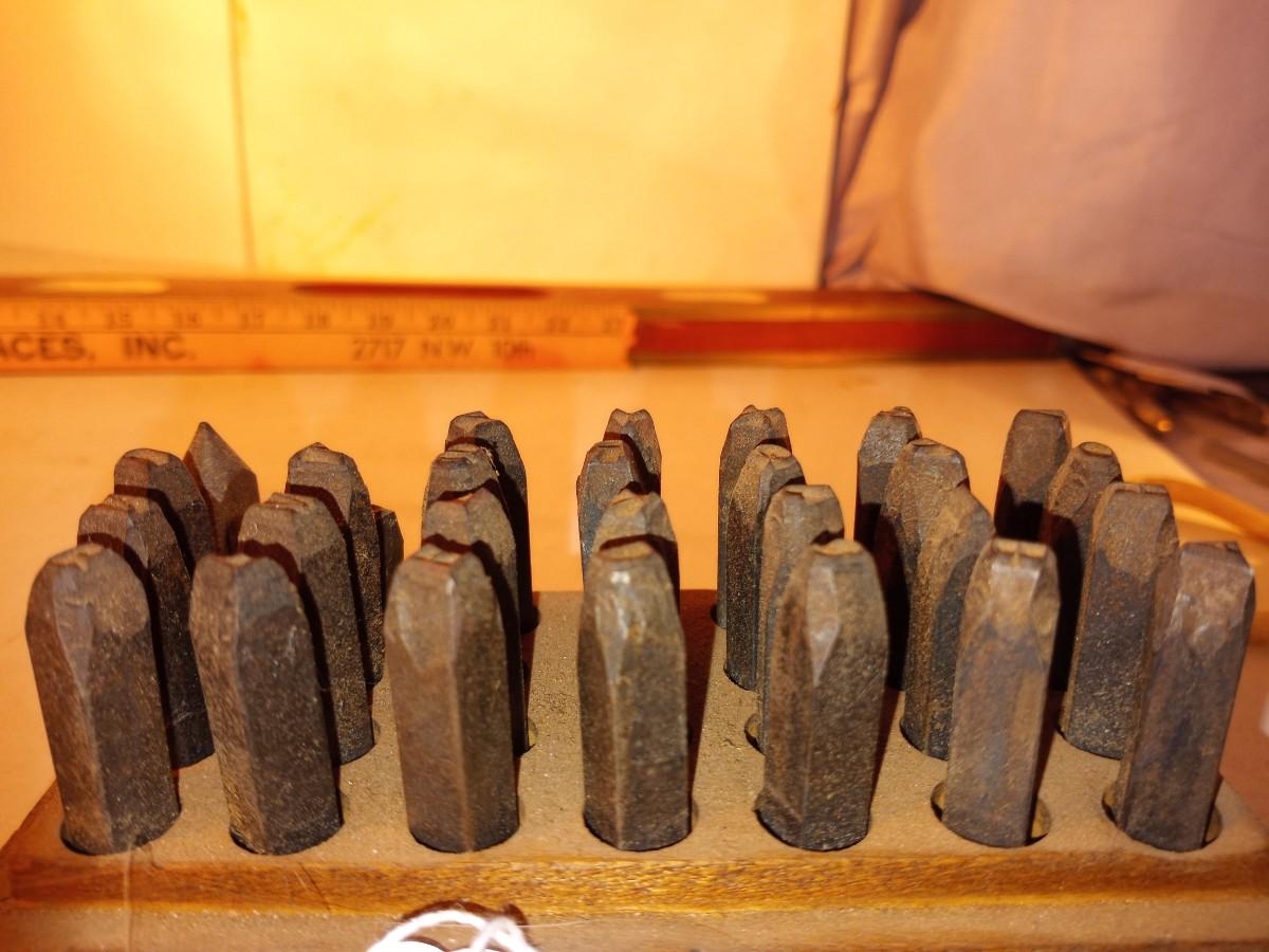 Very nice set of alpha metal punches from A to Z. In a wooden case, missing the top. used but in good shape. MAKE-AN-OFFER-text only-405-401-1967